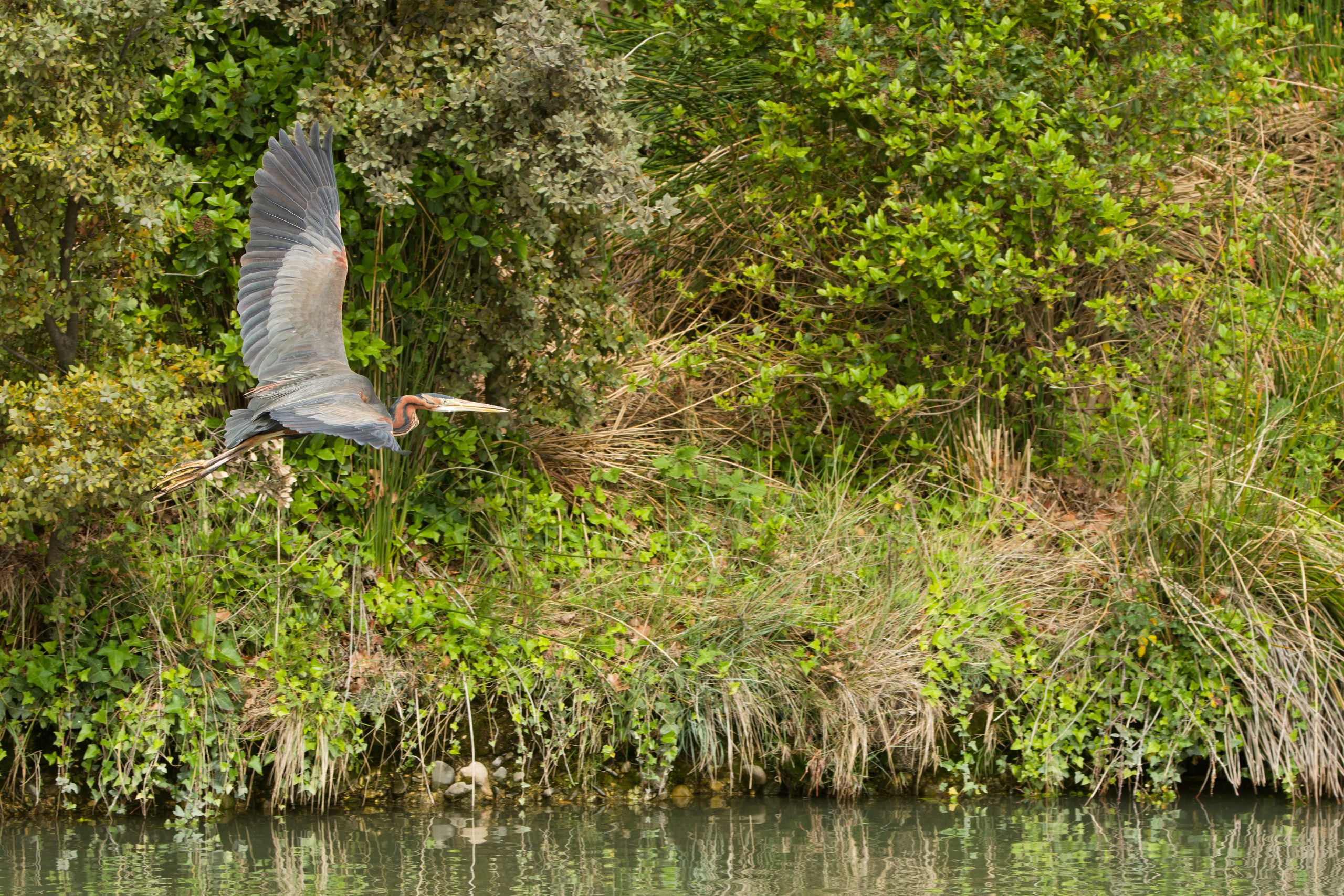 Visuel - Les ailes du canal, vol d'un héron pourpré à Argeliers (11) ©Gabriel Sanchez -