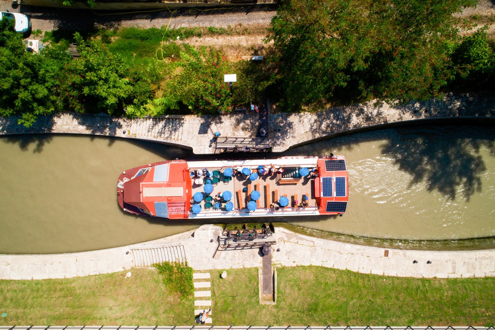 Enjoy the experience of passing through the staircase of locks at Fonseranes, a true masterpiece of engineering (Grand site d’Occitanie), while listening to the story of the site and its creator.