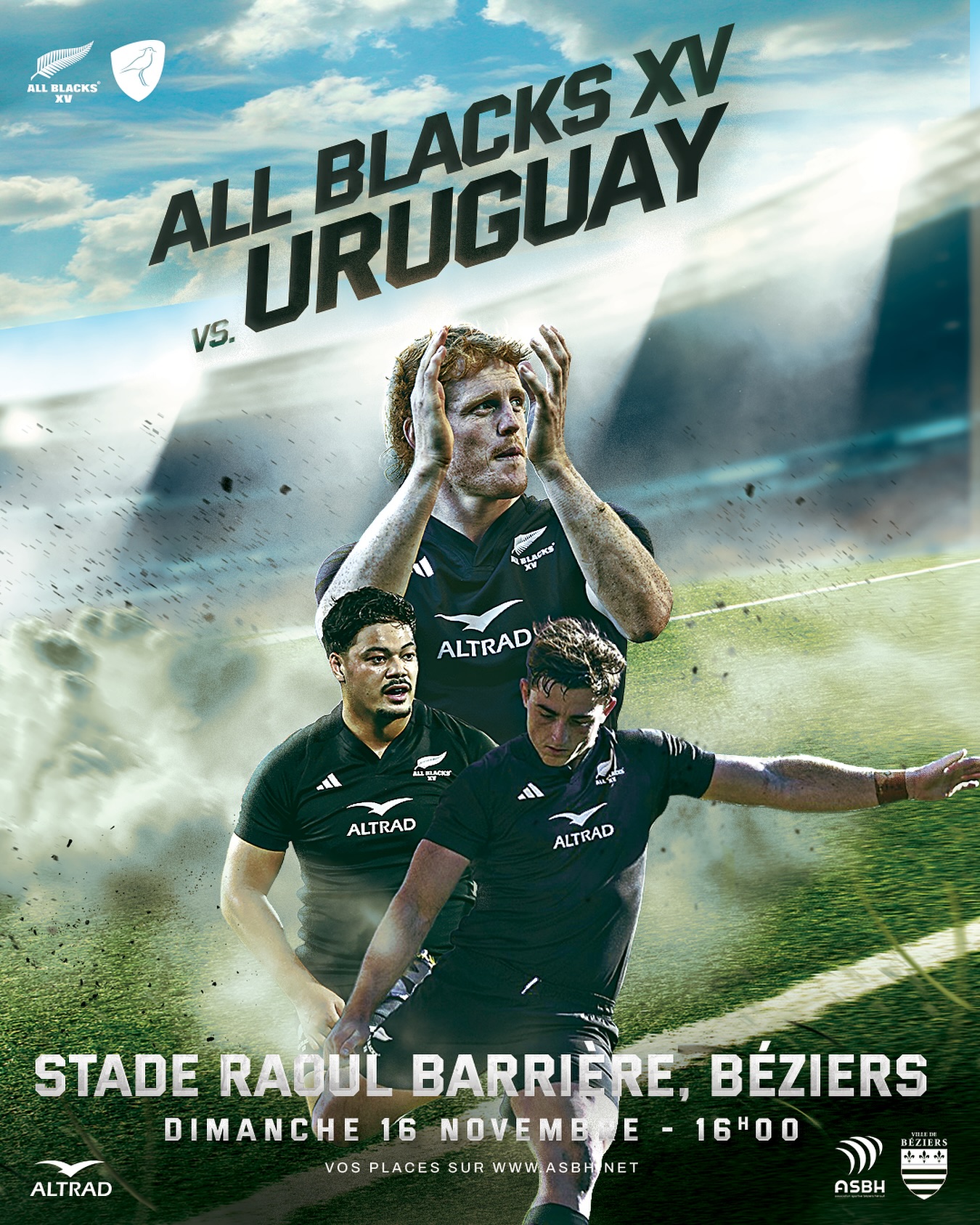 On the occasion of the ALL BLACKS autumn tour of Europe, international rugby comes to Béziers with an exceptional match proposed by the Altrad Group: ALL BLACKS XV ? URUGUAY!