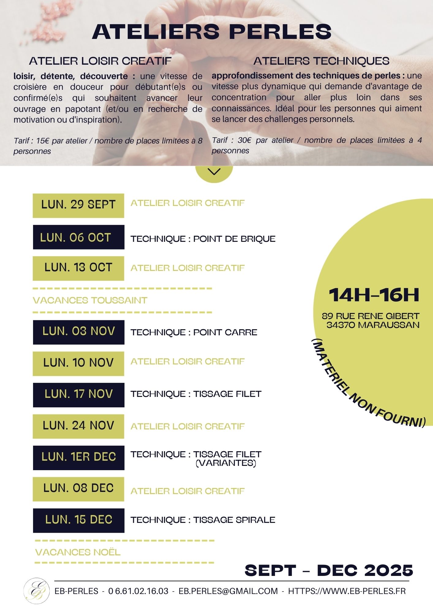ATELIERS PERLES 89 Rue René Gibert34370 MARAUSSAN