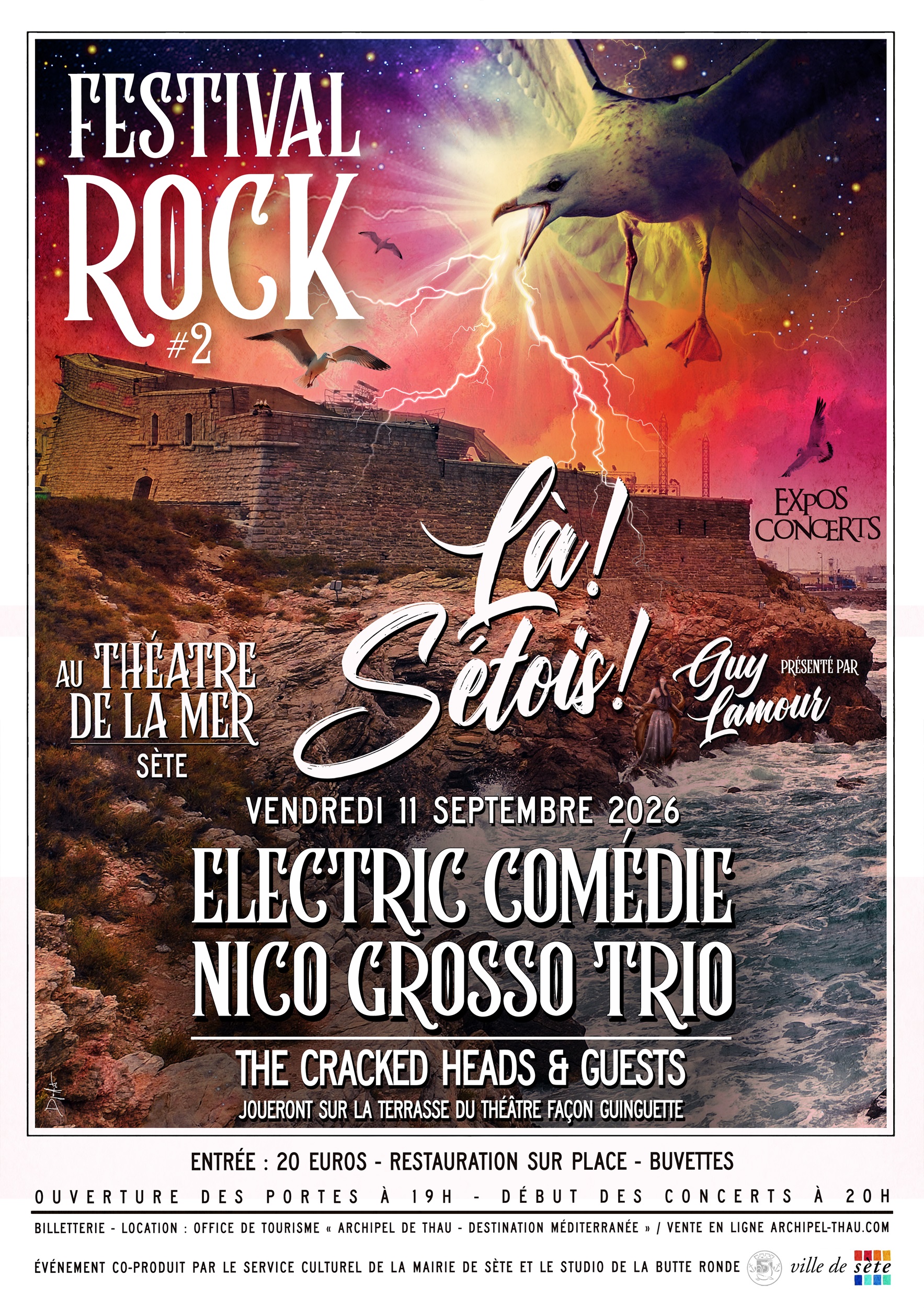 Vibrez au rythme du rock sétois dans un cadre exceptionnel face à la Méditerranée ! Le Festival “Là ! Sétois”, organisé par l’association Les Rabageois, vous invite à une soirée 100 % locale, entre énergie musicale, passion vinyle et ambiance estivale.Au programme :Concerts de groupes sétois : Electric Comédie, Nico Grosso TrioAnimations sur la terrasse avec The Cracked Heads & GuestsExpositions, concerts, bourse aux vinylesprésenté par Guy LamourRestauration sur place