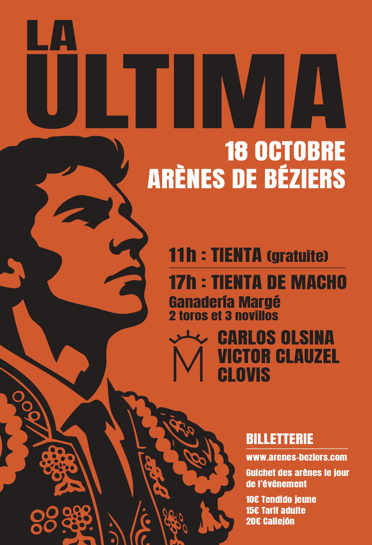 – 17H Tienta de macho : proposée par la Ganaderia Margé, avec deux toros (réserve de Dax et Arles) et trois novillos, face à Carlos Olsina, Victor Clauzel et Clovis.
