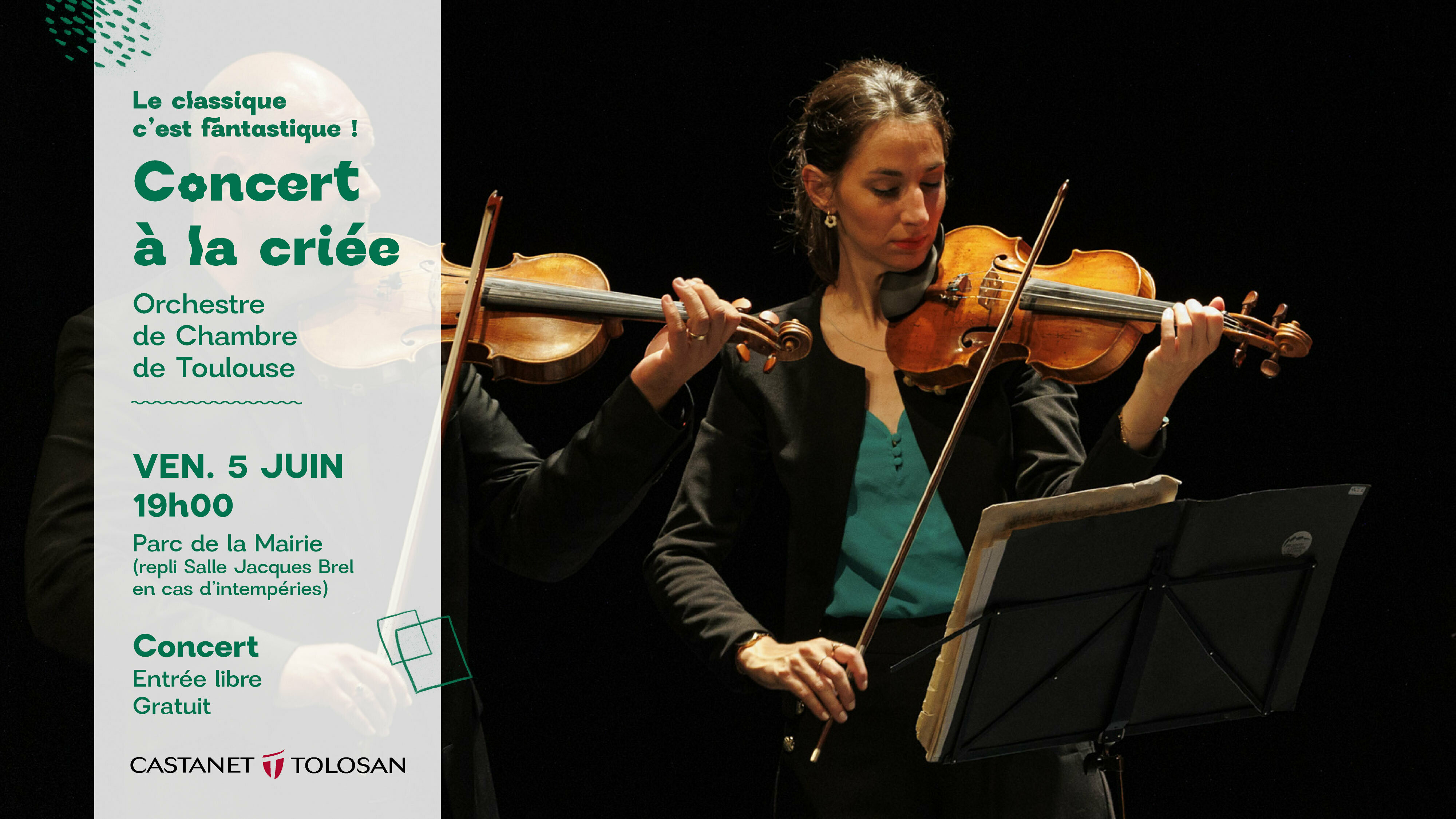 ### **Découvrez le Concert à la criée par l’Orchestre de Chambre de Toulouse, le vendredi 5 juin à 19h, en plein air.**