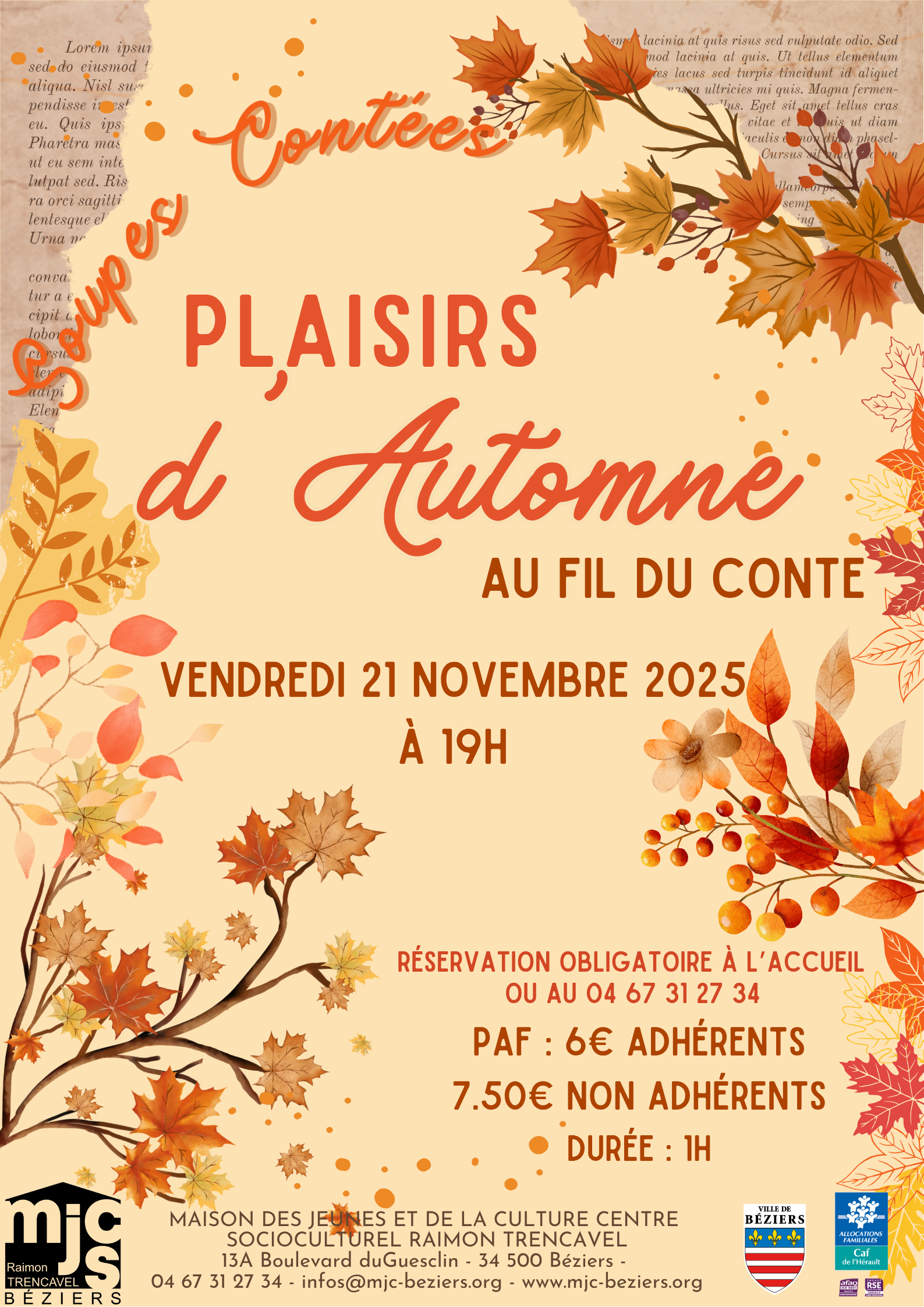 PLAISIRS D’AUTOMNE – PAR LA CIE AU FIL DU CONTE 13A Boulevard Bertrand Duguesclin 34500 BEZIERS