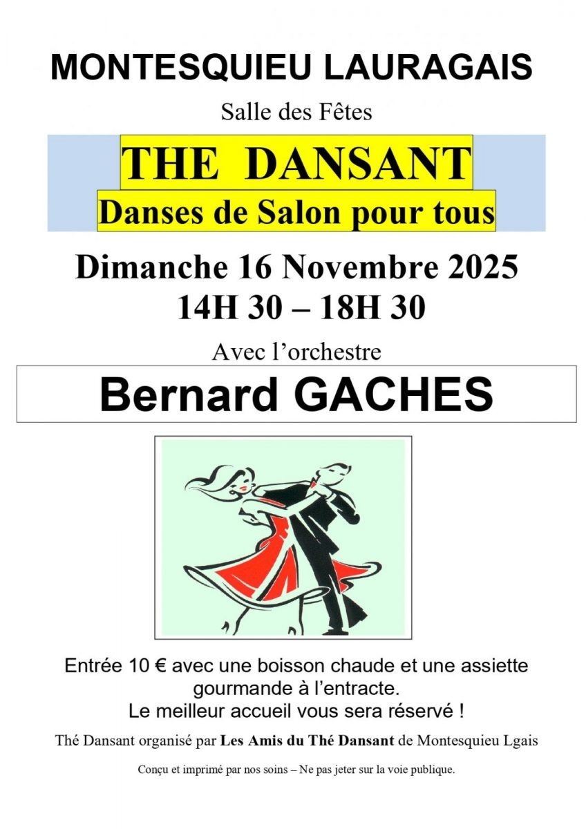 From 2.30pm to 6.30pm at the village hall in Montesqueu-Lauragais.The afternoon will be entertained by the T’ Dansant band.