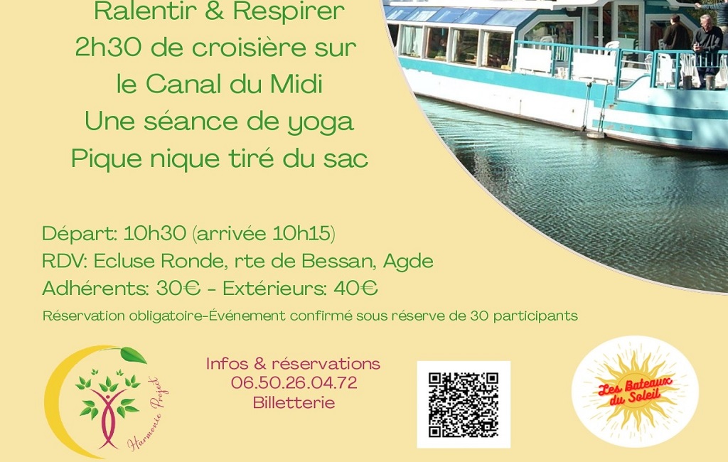 Harmonie Project, in partnership with Les Bateaux du Soleil, offers you a morning of ‘Yoga & Cruise’ on the Canal du Midi.