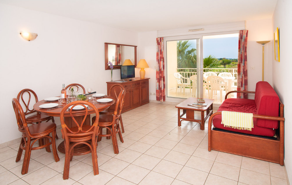 The Palmyra Golf vacation residence welcomes you to the Cap d’Agde international golf course for a complete change of scenery in the midst of splendid Mediterranean countryside. Situated 800 meters from the beach and 100 meters from the first shops, you’ll be able to enjoy a vacation for up to 6 people in a comfortable apartment.