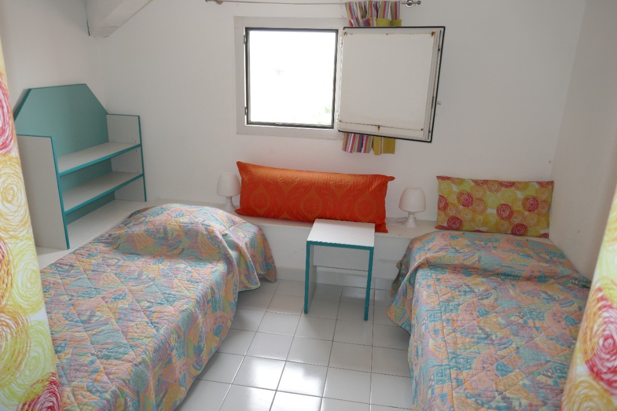 Profitez de cet appartement spacieux de 70 m² situé au 4ème étage avec une vue imprenable sur la mer. Idéal pour des vacances en famille ou entre amis, il peut accueillir jusqu’à 6 personnes. L’appartement comprend trois chambres indépendantes : une chambre avec un lit double (140 cm) et deux chambres avec chacune deux lits simples (80 cm), ainsi qu’une mezzanine équipée de deux lits simples (80 cm). La cuisine indépendante est entièrement équipée avec un réfrigérateur, un lave-vaisselle, un lave-linge privé, un micro-ondes, et une cafetière filtre et Dolce Gusto. Pour votre confort et divertissement, vous disposerez d’une télévision et d’un balcon avec mobilier de jardin. Vous aurez également accès à une piscine commune et bénéficierez d’un stationnement privé. Cet appartement vous garantit un séjour agréable avec tout le confort moderne dans un cadre idyllique.