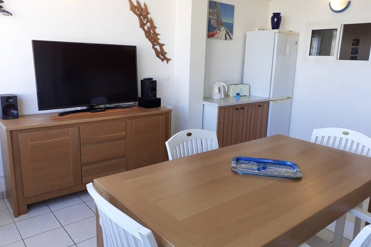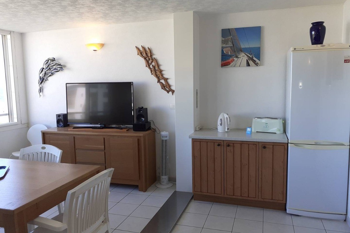 Profitez d’un séjour inoubliable au Cap d’Agde dans ce spacieux appartement 3 pièces offrant une vue imprenable sur la mer, la plage et la piscine. Situé au 3ᵉ étage avec ascenseur dans une résidence sécurisée avec piscine (ouverture sous réserve des conditions sanitaires), cet appartement tout confort est idéal pour des vacances en famille ou entre amis. D’une capacité de 6 personnes, il se compose d’une entrée avec placard, d’une salle d’eau avec douche, lavabo et rangements, ainsi que de WC séparés. La première chambre dispose d’un lit double en 140 cm et d’un grand placard. La deuxième chambre est équipée de deux lits simples en 80 cm et d’un placard. Le séjour lumineux comprend un canapé clic-clac pour deux personnes, une table avec chaises, un buffet, une télévision grand écran et un rafraîchisseur d’air. La cuisine moderne est entièrement équipée avec un réfrigérateur-congélateur, une plaque induction 4 feux, un micro-ondes, un four, un lave-vaisselle, un lave-linge et toute la vaisselle nécessaire pour 6 personnes. Ce bel appartement, spacieux et bien équipé, bénéficie d’un cadre exceptionnel avec une vue dégagée sur la mer et un accès direct à la plus belle plage du Cap d’Agde. Un cadre idyllique au Cap d’Agde Le Cap d’Agde, joyau de la Méditerranée, offre 14 km de sable fin et une multitude d’activités pour tous. Sports nautiques, sentier sous-marin, port de plaisance animé avec ses restaurants et animations, casino, discothèques, golf international, spas, centre de tennis, parcs aquatiques comme Aqualand et Captain Jako, pistes cyclables, marchés de produits régionaux et la Cité d’Agde avec ses 2500 ans d’histoire. Le secteur Rochelongue/Richelieu est particulièrement prisé pour sa plage de sable fin, sa baignade surveillée aux eaux peu profondes, ses animations, ses activités sportives et culturelles, ainsi que ses nombreux commerces. Réservez dès maintenant votre séjour et laissez-vous séduire par la douceur de vivre du Cap d’Agde ! Référence Agence AZURA : FMG3