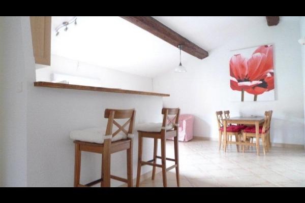 REF: ‘Mirabeau2’ A very stylish and comfortable large 2 bed loft apartment, sleeps 4. 2 mins walk from the centre of the historic town of Agde in a quiet location. 3 km from the many beautiful beaches of the local area. Located in a private secure building of a small communal Residence of 3 apartments only. Apartment is on 2nd and last floor without lift. Accomodation comprises:- Open-plan equipped kitchen with comfortable seating and dining table with seating for six. Separate lounge with 2 settees, tv, radio + dvd player. 1 double bedroom, 1 twin bedroom, bathroom with bath/shower-over, separate wc. Wifi. Public parking near the apartment.