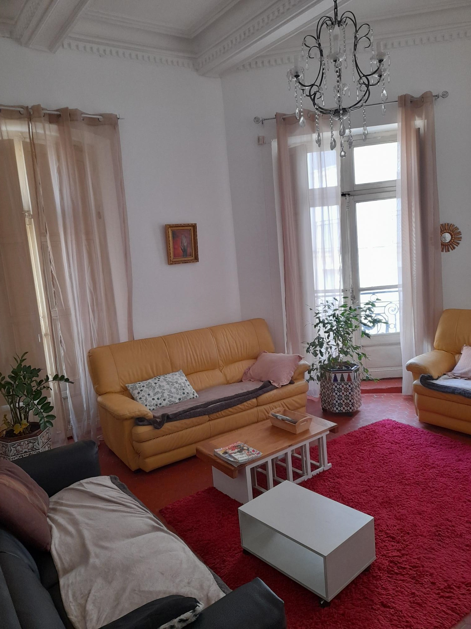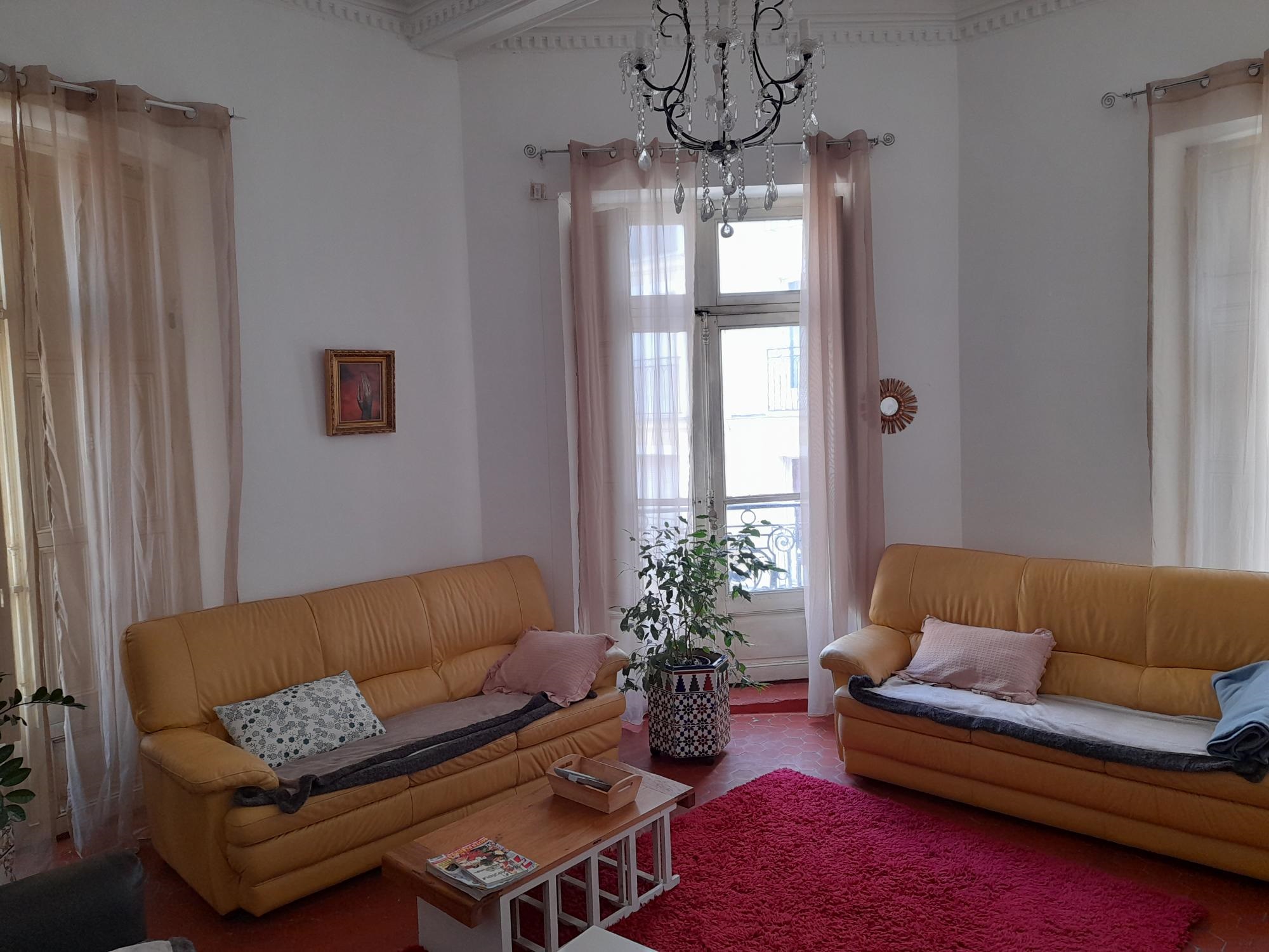 Appartement situé au cœur de la ville, au 2ème étage d’un immeuble, 110m2 de superficie avec 2 chambres, coin cuisine, salle de bains, wc séparé, salon, salle à magner, balcon, wifi, TV, parking à proximité.