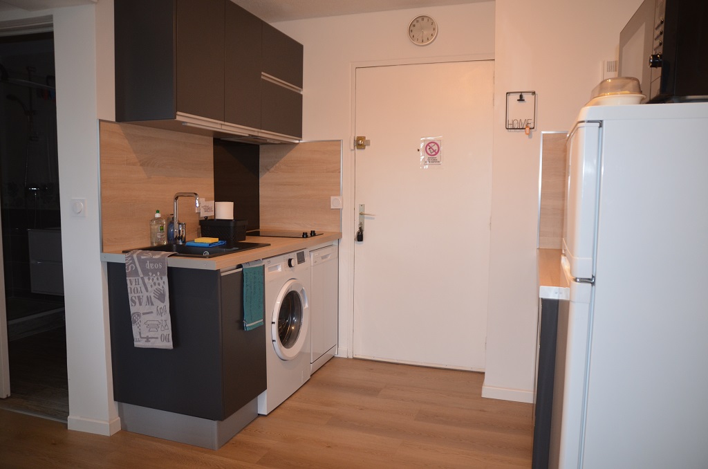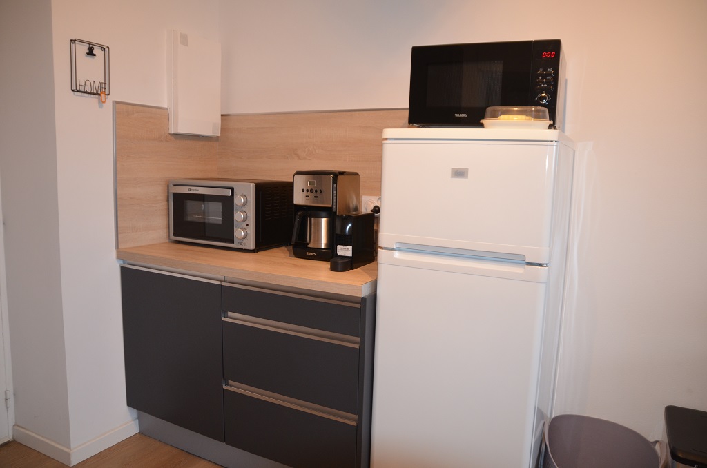 Well-equipped kitchen area with induction hob, mini-oven, microwave, Nespresso machine… everything you need to feel at home!