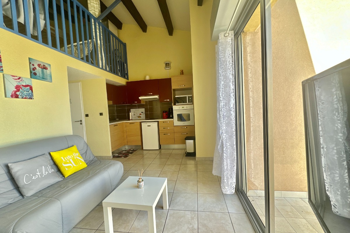 Cap d’Agde, two rooms mezzanine of 40 sqm with terrace located on the 1st and last floor without elevator in a residence with swimming pool and 100 m from the beach! Sleeps: a double bed in the bedroom, a double bed and a bunk bed on the mezzanine. Separate shower room and toilet. Equipment: Television, washing machine, dishwasher, oven, microwave. PARKING LOT B114. Reference agency: 172