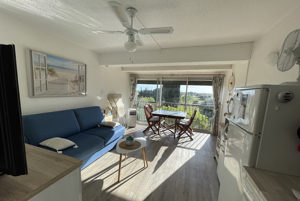 Bright and well-equipped apartment, quiet location with sweeping golf course views, sleeps 4, in a tree-lined residence with large swimming pool, tennis court, numbered and secure private parking.