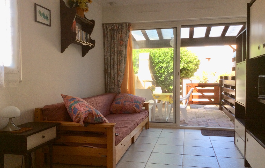 This 3-star studio (official tourist accommodation classification), on the ground floor, opens directly onto a pleasant garden with trees and a stone barbecue, and offers direct access to the beach where you can go in your bathing suit. No road to cross.