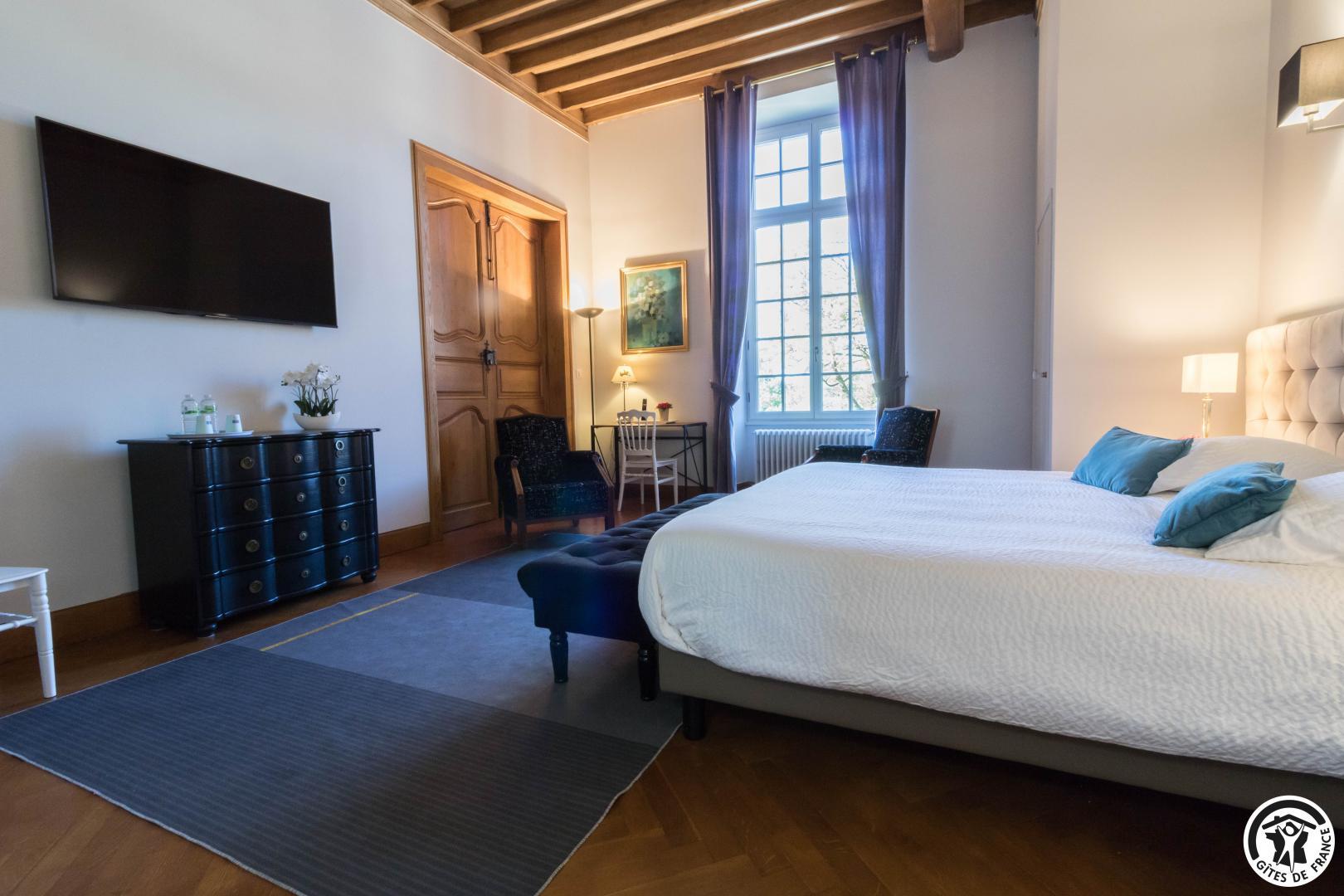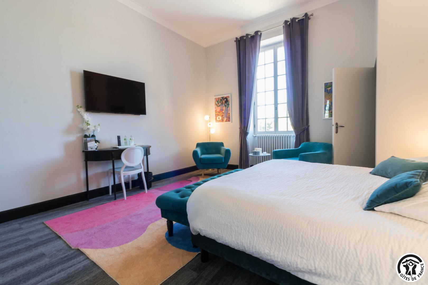 The 18th-century residence has 5 guest rooms with refined, personalised decor (lift between the ground and ground floors). All have a view over the park, TV and Wi-Fi internet access, reversible air conditioning, private bathroom with walk-in shower and separate WC. The ground-floor bathroom also has a bath. The entrance hall features a pool table and an Arcade console with thousands of video games. The dining room and lounge will be shared with your guests.