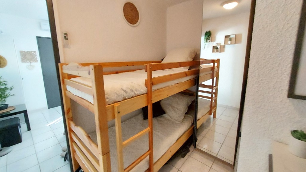 The apartment is very well equipped: 2 TVs, children’s crockery, folding cot, booster seat, large plancha, deckchairs, beach games, closed bedroom.