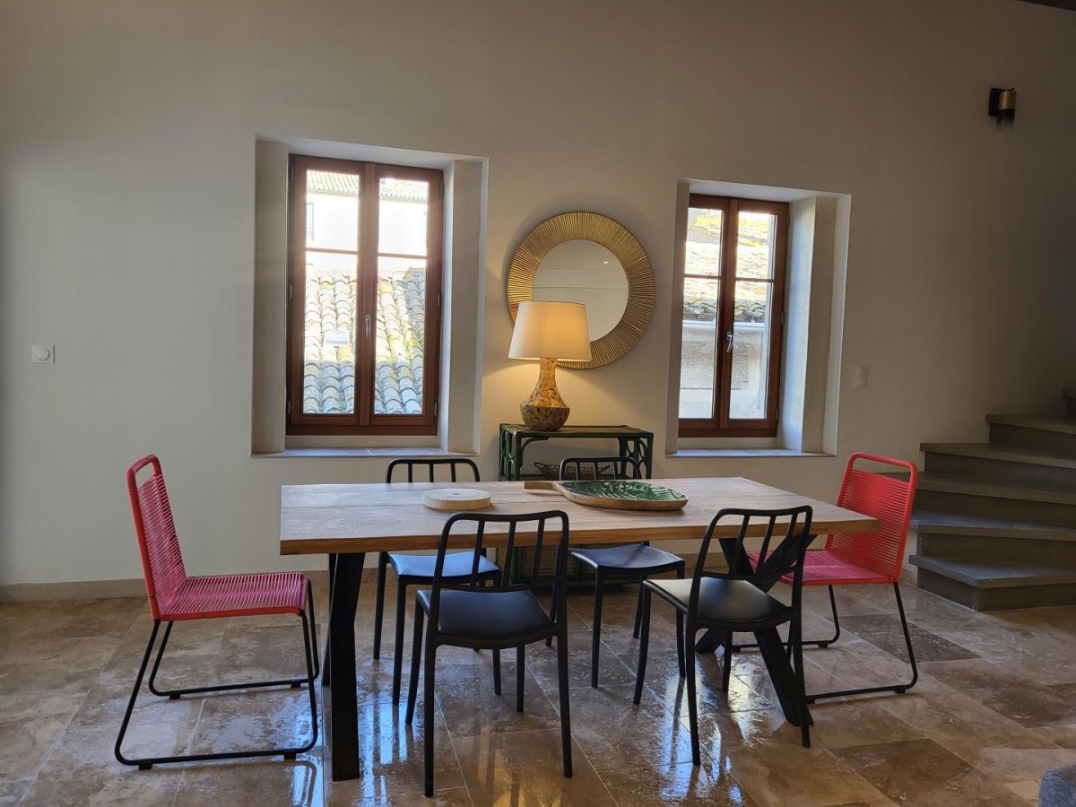 Bienvenue au gîte Coté Château, un gîte rural situé dans le charmant village de Roquecourbe-Minervois, au cœur de l’Aude. Ici, vous profitez d’un cadre calme et authentique, au sein d’un domaine viticole où les propriétaires vignerons vous invitent à découvrir leurs cuvées dans le caveau de dégustation. À proximité, explorez les paysages typiques de la garrigue, flânez le long du Canal du Midi, classé au patrimoine mondial de l’UNESCO, ou profitez des eaux paisibles du lac de Jouarres à Homps pour des activités nautiques et des moments de détente. Les amateurs de patrimoine apprécieront les villages médiévaux du Minervois et les sites emblématiques de l’Aude. Le gîte, aménagé dans une ancienne écurie rénovée avec soin, allie charme traditionnel et confort moderne. Il peut accueillir jusqu’à 6 personnes, idéal pour un séjour en famille ou entre amis. À l’étage principal, vous disposez d’une pièce à vivre lumineuse avec salon et séjour-cuisine ouverte, parfaitement équipée : four, micro-ondes, plaque à induction, lave-vaisselle, réfrigérateur, congélateur, bouilloire et machine Nespresso. Une salle d’eau avec douche à l’italienne et WC complète cet espace. À l’étage supérieur, trois chambres confortables vous attendent : Chambre 1 : 2 lits superposés (90×190) Chambre 2 : 1 lit standard (160×200) Chambre 3 : 1 lit standard (160×200) Les extérieurs offrent un cadre agréable pour vos moments de détente, avec un parking privatif à disposition. Les charges sont incluses pour un séjour en toute tranquillité. Parmi les atouts du gîte : un plancher chauffant en hiver et rafraîchissant en été, et la possibilité de vivre une expérience œnologique unique grâce au caveau de dégustation sur place.