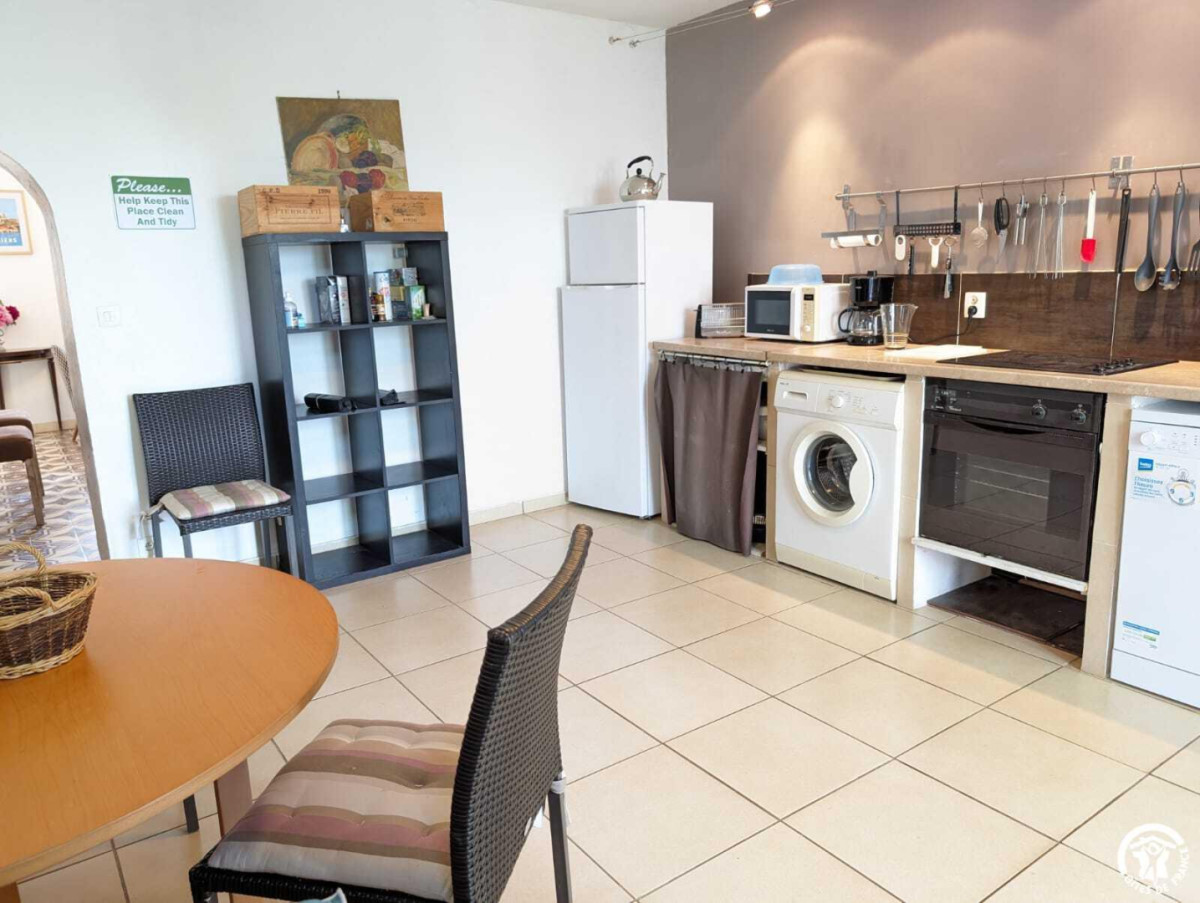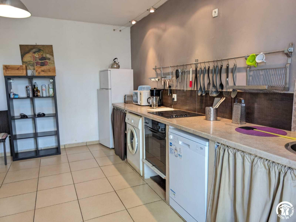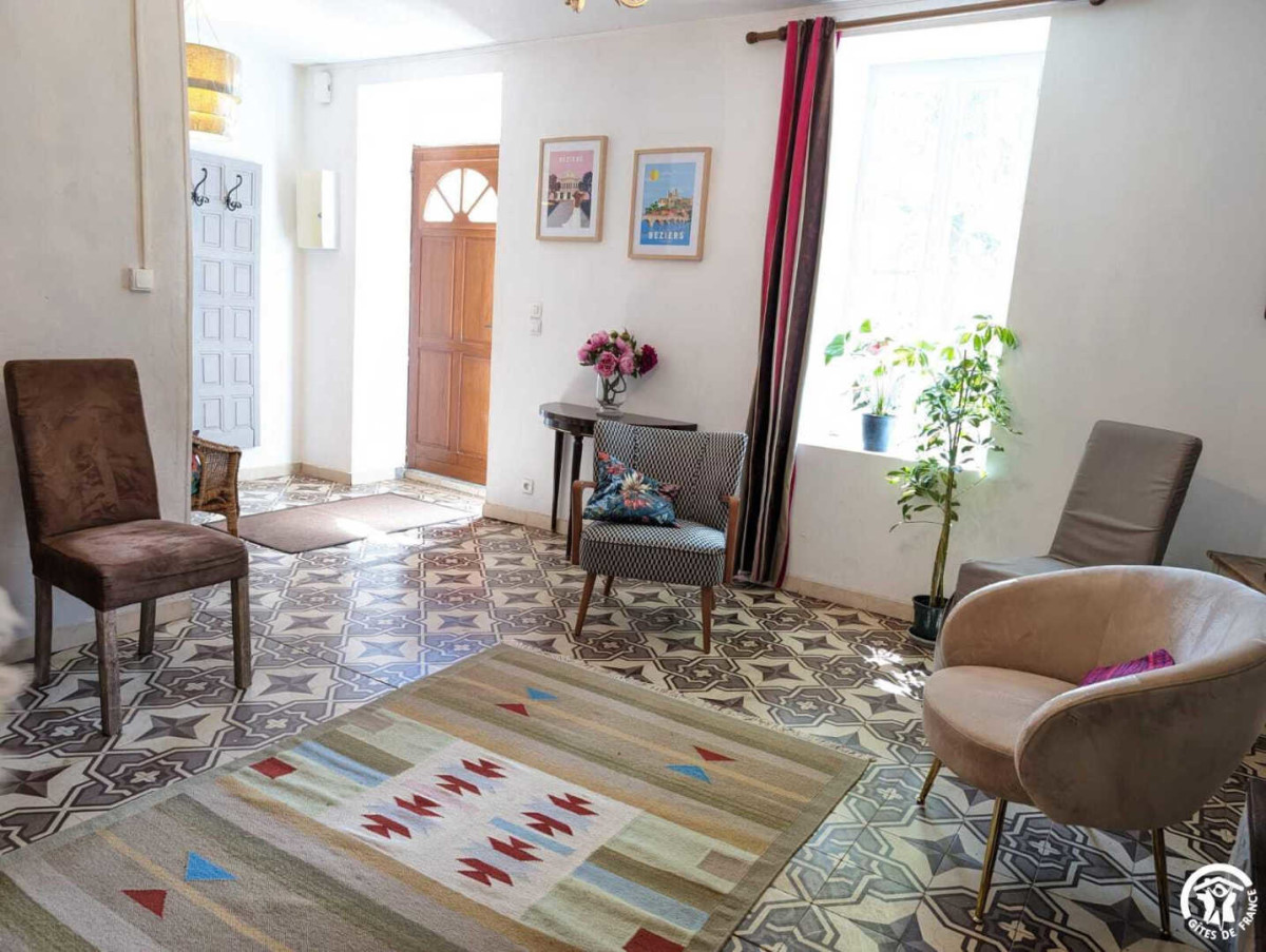 Gite raised on 2 levels in a 18th C house set on a wine-growing estate. Ground floor : lounge, dining room/kitchen, wc. 1st floor : 4 bedrms with 2 sgle beds in each (one with adj. shower), shower/wc. Electric heating, wood stove, washing machine, dish washer, TV. Beds made, final cleaning on request. Grounds (500 m²), furniture, bbq, parking. Surface area : 110 m² TOURIST ATTRACTIONS : Béziers (féria in august, Fonséranes locks, cathedral), Fontcaude Abbey, Ensérune Oppidum, Réals (canoe centre), Roquebrun (mediterranean garden), Haut Languedoc Nature Reserve.