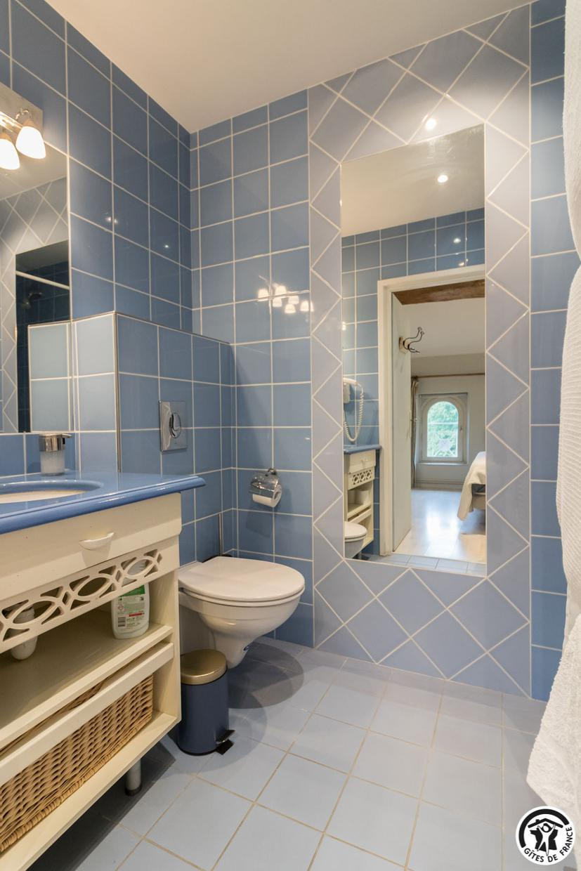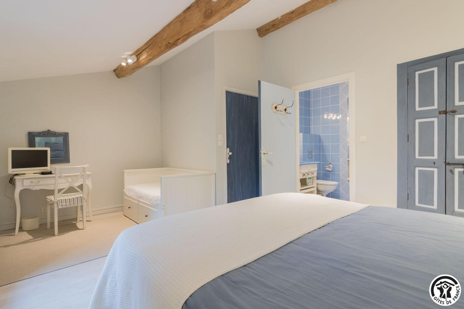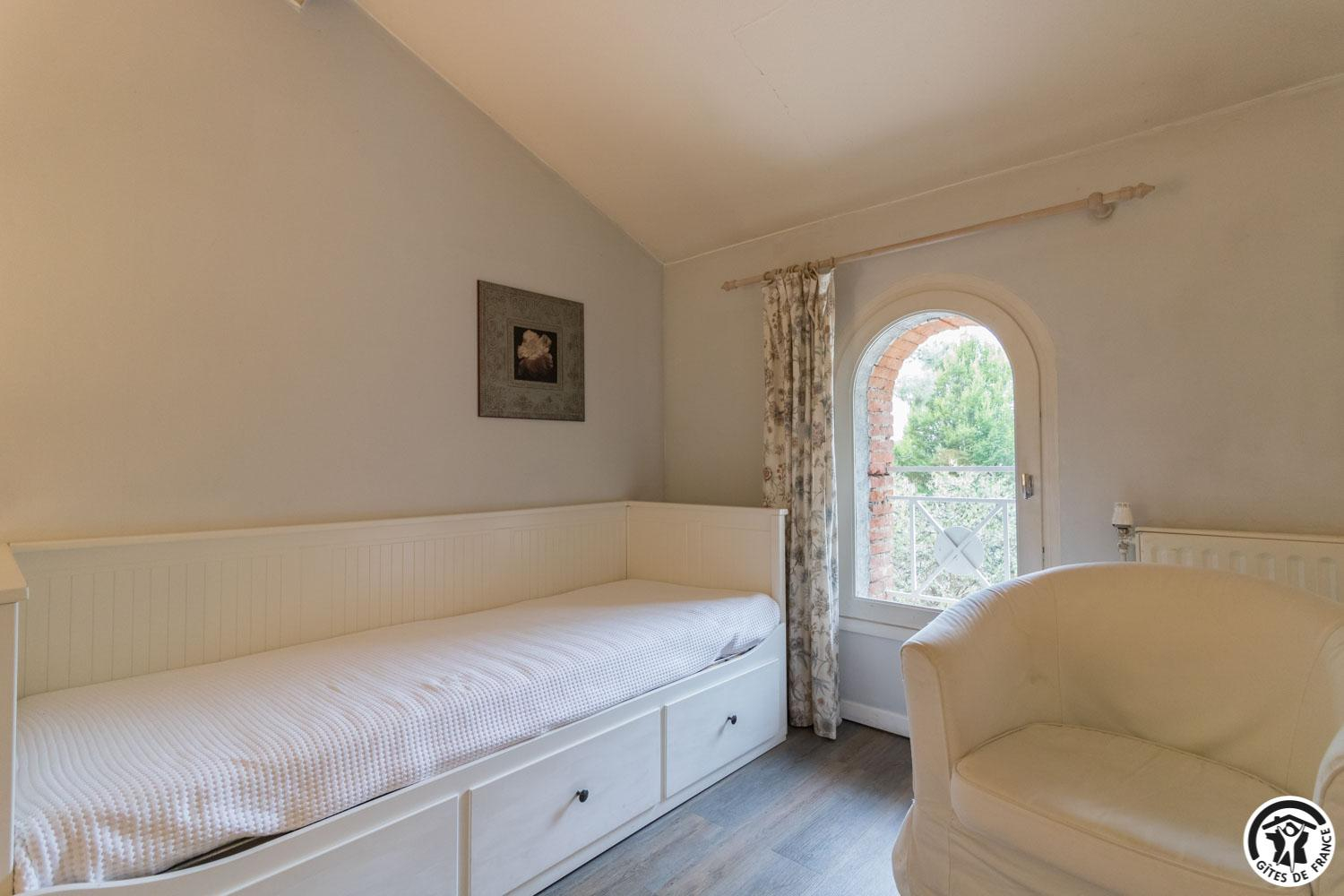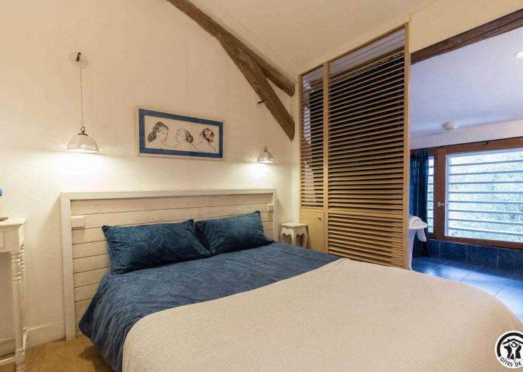 – upstairs: 4 non-smoking bedrooms (accessible via 2 staircases): “Goya” (1 x 160cm double bed), “Pastel” (2 x 90cm single beds that can be twinned to form 1 x 180cm double bed), Hedwige (2 x 90cm single beds that can be twinned to form 1 x 180cm double bed + 2 x 80cm single beds including 1 drawer) and Ingres (2 x 90cm single beds) (1 x 160cm double bed).