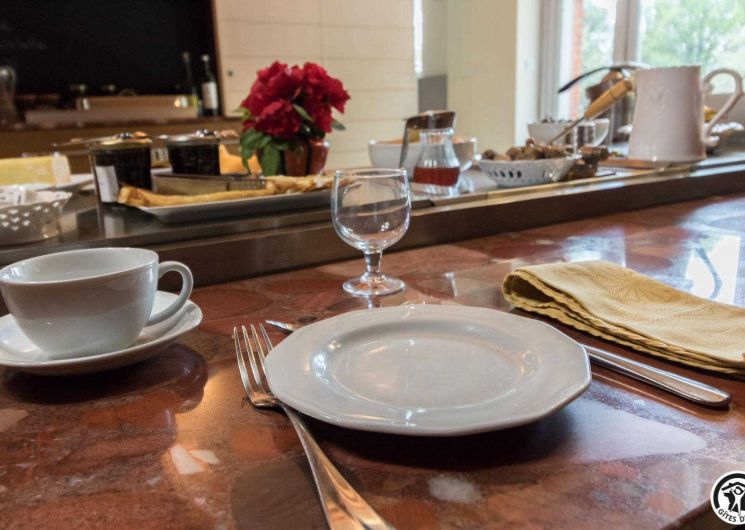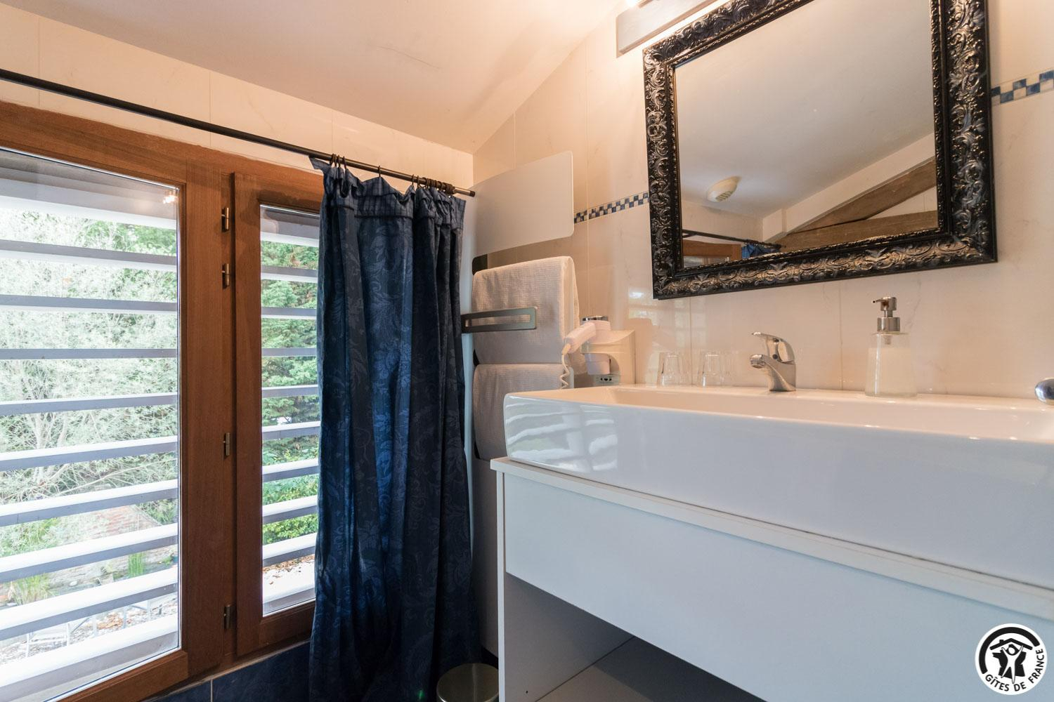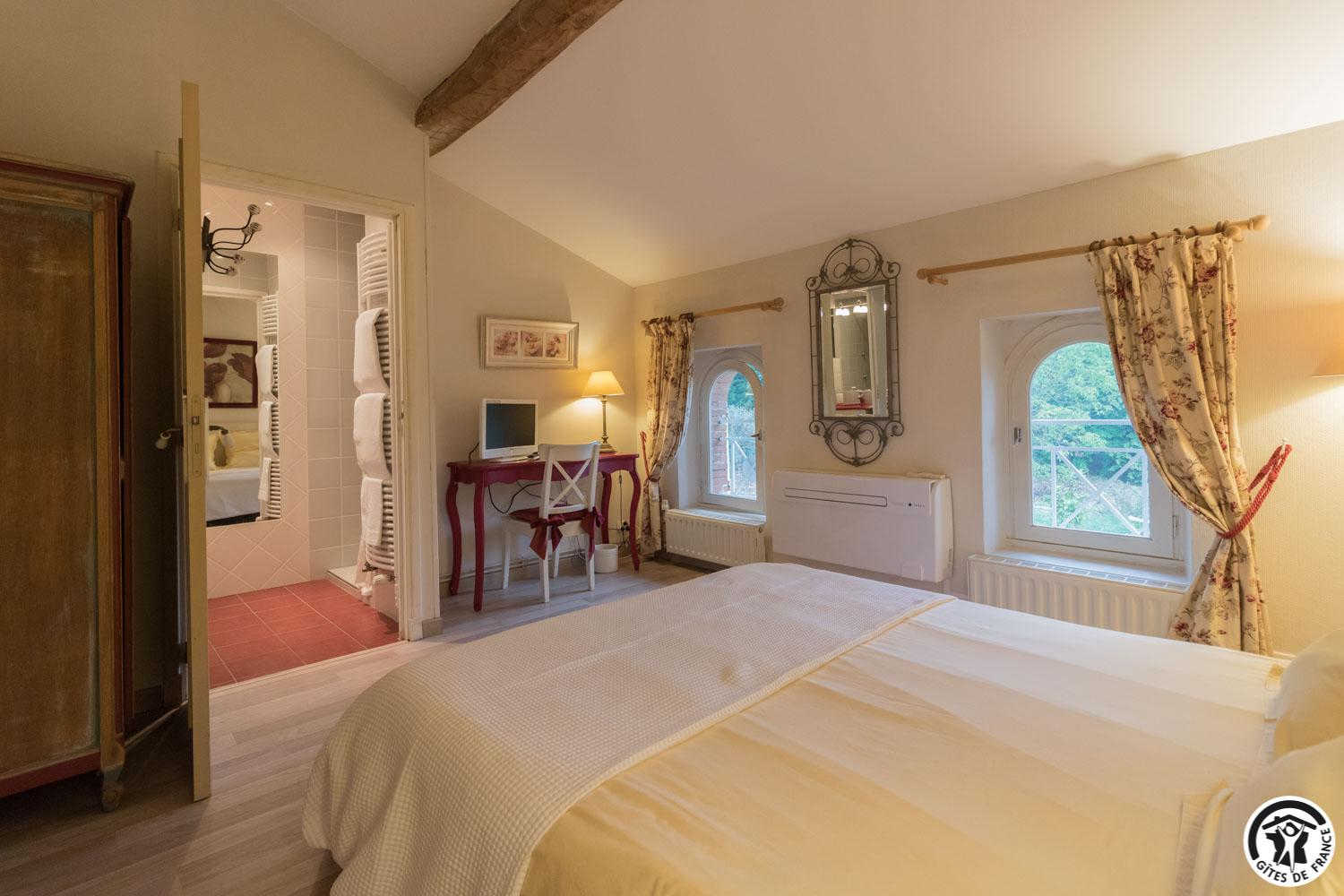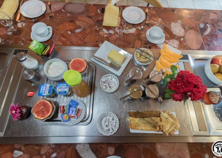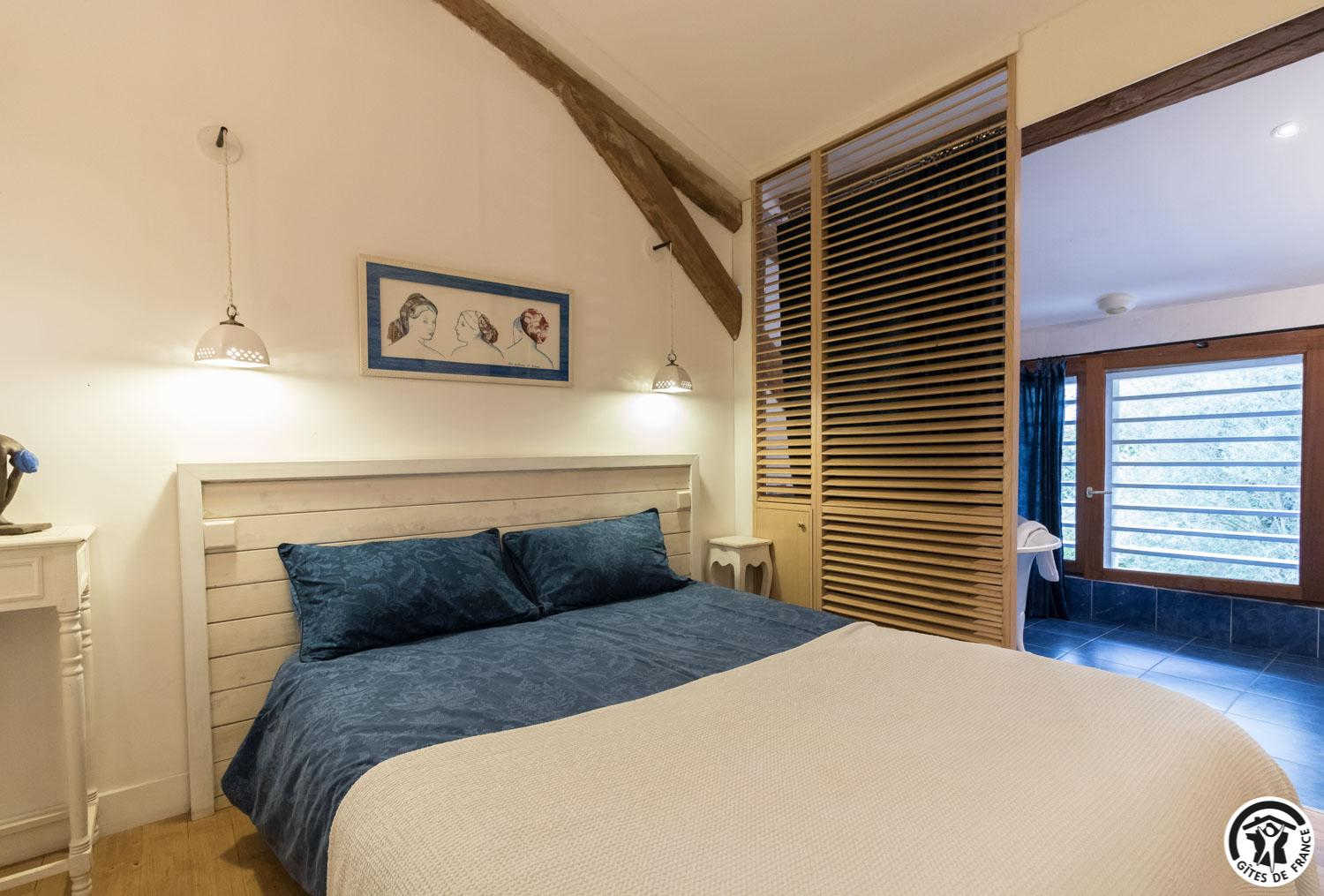 – upstairs: 4 non-smoking bedrooms (accessible via 2 staircases): “Goya” (1 x 160cm double bed), “Pastel” (2 x 90cm single beds that can be twinned to form 1 x 180cm double bed), Hedwige (2 x 90cm single beds that can be twinned to form 1 x 180cm double bed + 2 x 80cm single beds including 1 drawer) and Ingres (2 x 90cm single beds) (1 x 160cm double bed).