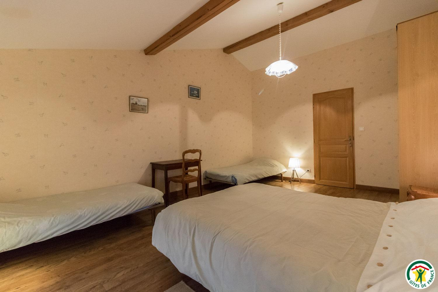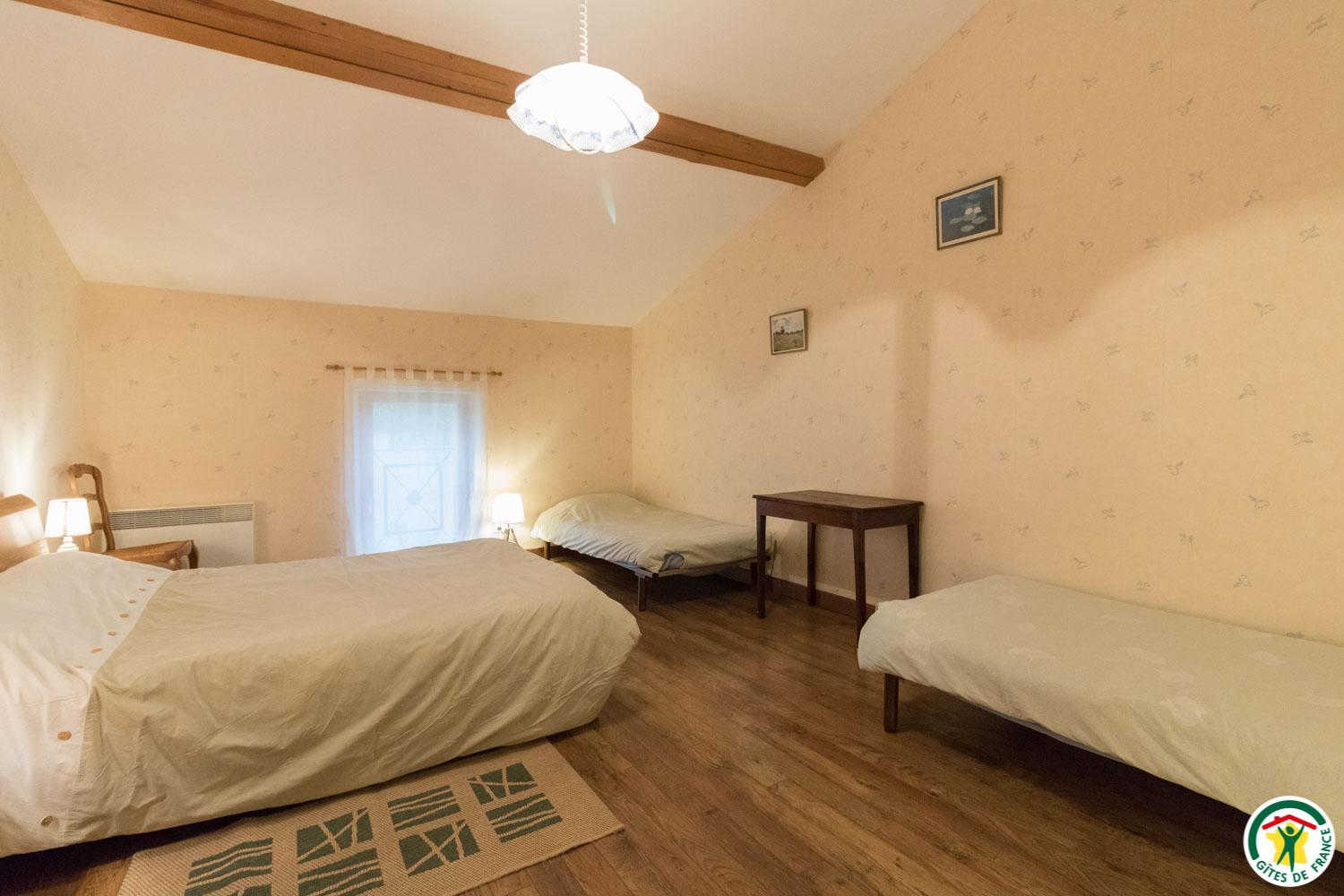 – upstairs: Family room (1 double bed 140cm + 2 single beds 90cm + shower room and separate WC).