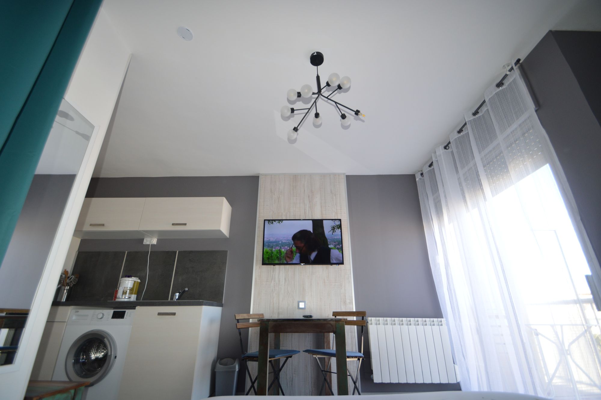 Proche du centre ville, à 300 mètres du centre thermal, notre studio 100 % rénové, avec une cuisine très bien équipée d’un vrai four, un micro-ondes et un réfrigérateur de grande taille. La salle de bain est équipée d’une vraie grande douche à l’italienne. La décoration est soignée et les équipements sont de qualité, et tous récents. Vous pourrez également profiter de la terrasse sans vis-à-vis, que ce soit pour déjeuner, ou diner. L’endroit est calme. Tous les mardis, et vendredi, vous avez accès directement à notre marché.