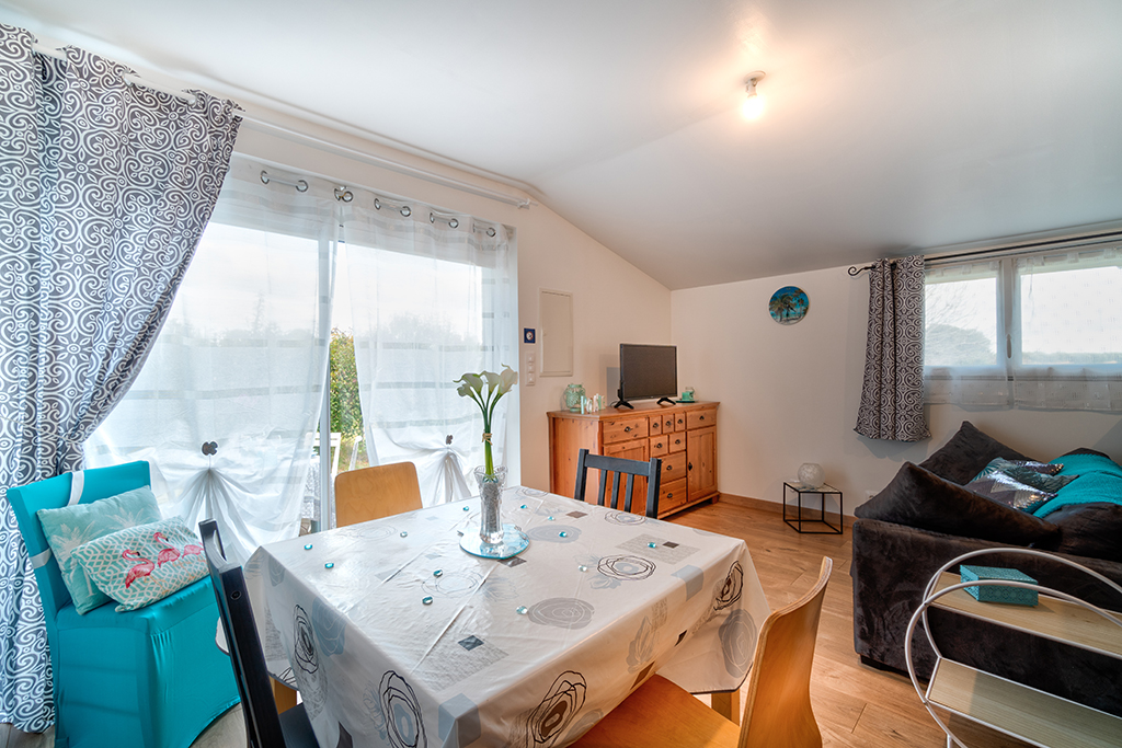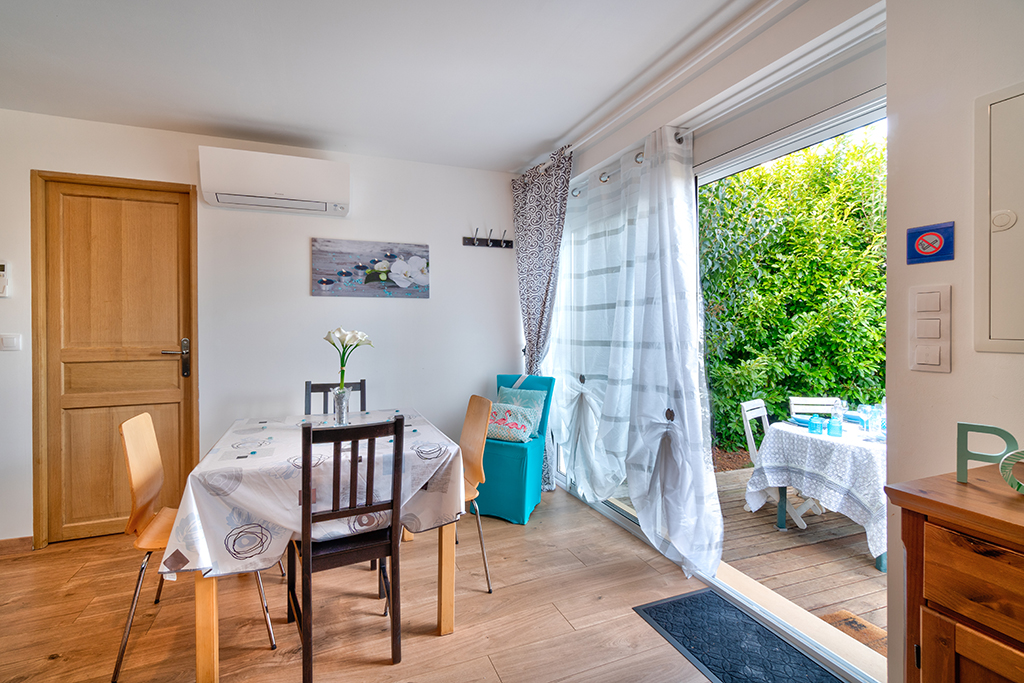 Gîte plain-pied “Figues et Caraïbes” de 40m2 de superficie, avec vue sur les vignes et les oliviers, est composé d’une chambre, cuisine entièrement équipée, salle de bains, TV, connexion wi-fi gratuite, 2 terrasses, climatisation, parking privatif, spa jacuzzi en option.