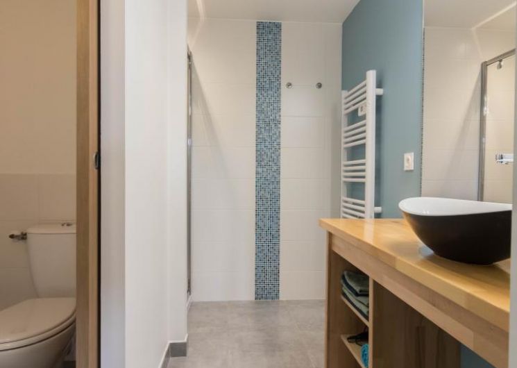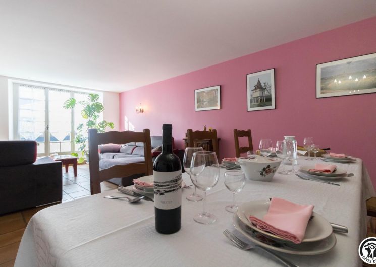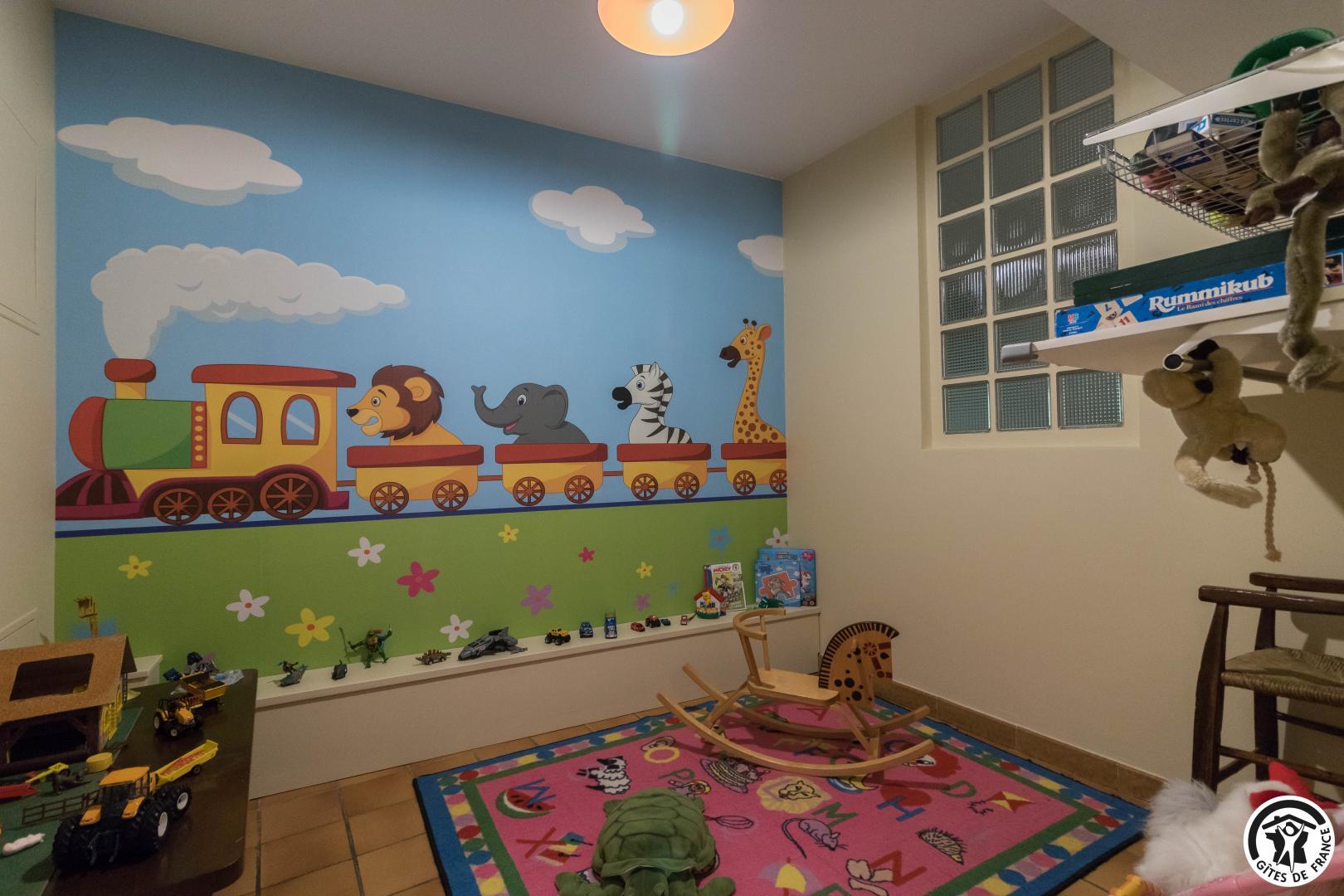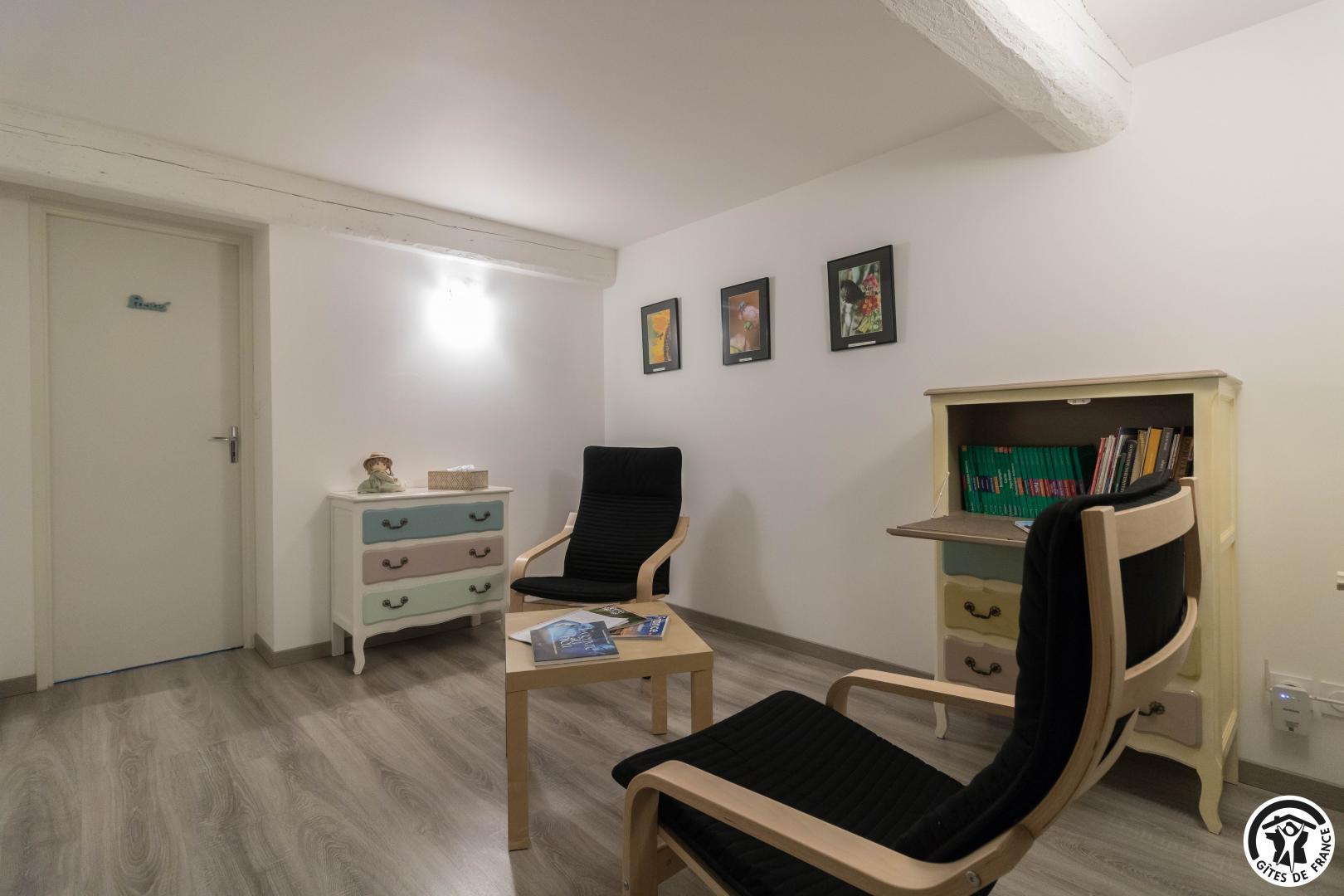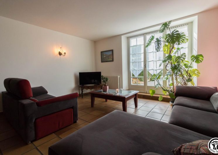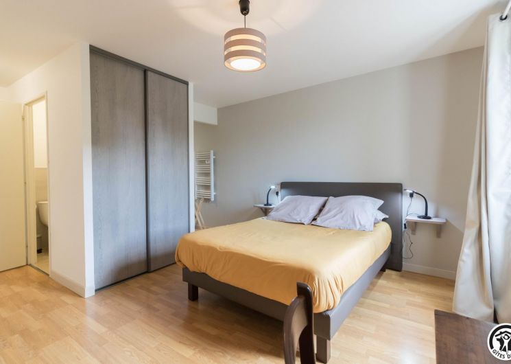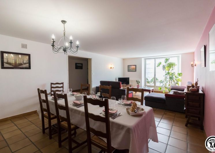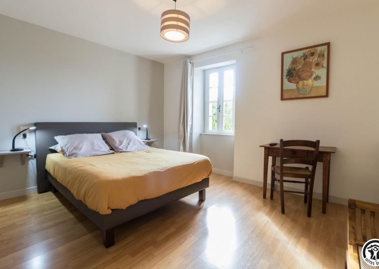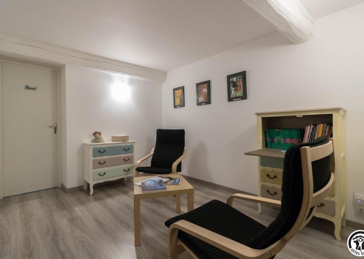 Ground floor: entrance hall, large living room with dining area and sitting room, kitchen, children’s playroom and separate toilet. First floor: 4 bedrooms, each with private shower room and WC (1 double bed (160cm) (1 double bed (140cm) (1 double bed (160cm) and 2 twin beds (80cm) (2 twin beds (80cm) (1 person)), lounge with library. Access to laundry room with washing machine and tumble dryer. Natural swimming pool and garden shared with the owners. Private courtyard, terrace and garden (garden furniture, deckchairs and barbecue). Electric vehicle charging point. Private courtyard, terrace and garden (garden furniture, deckchairs and barbecue). Garage with space for one car and possibility of parking in front of the gîte. Table tennis, table football and gym equipment.