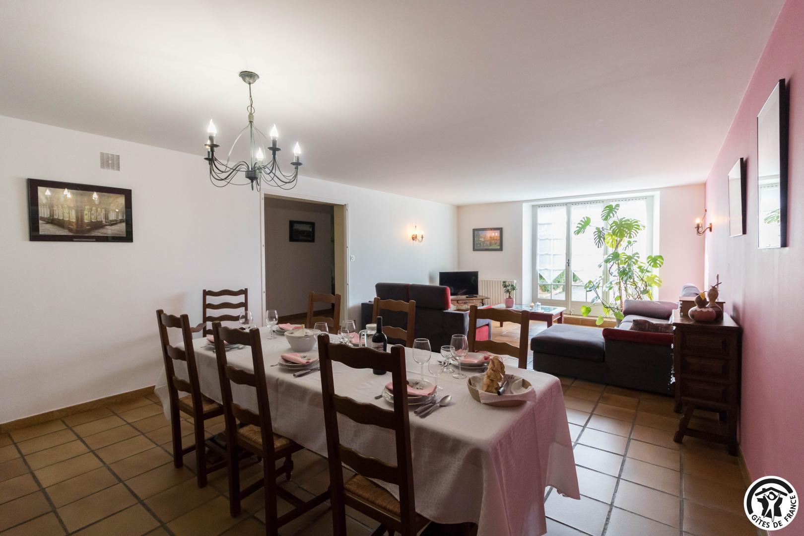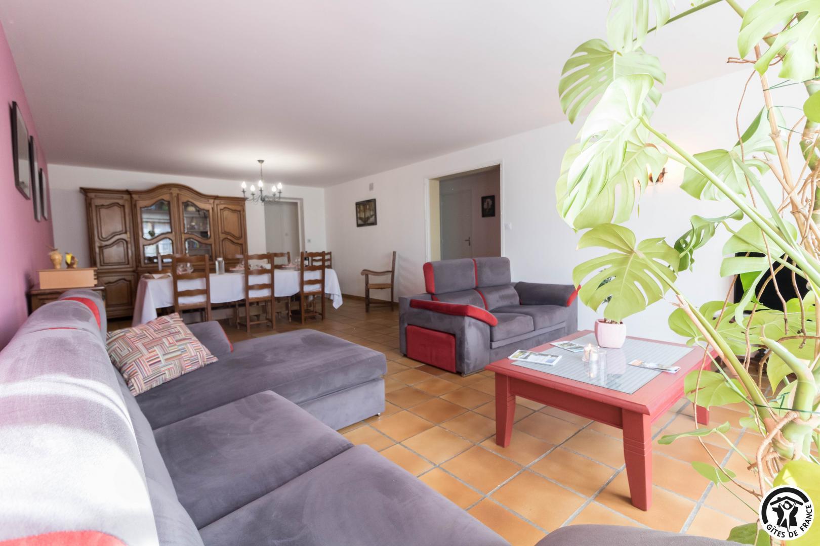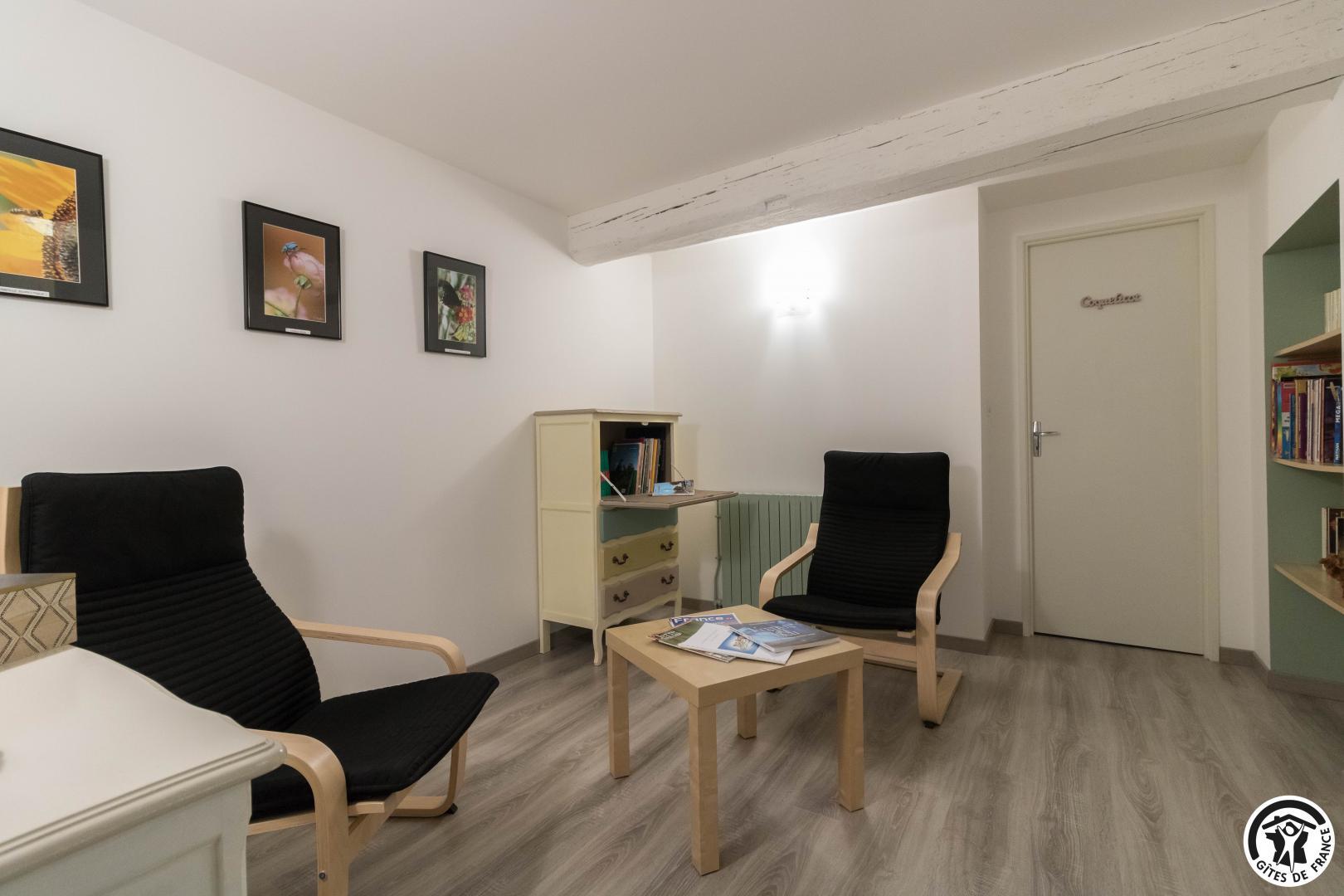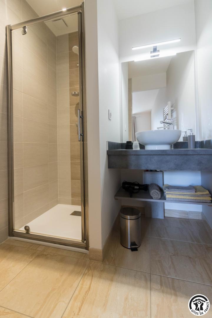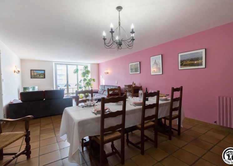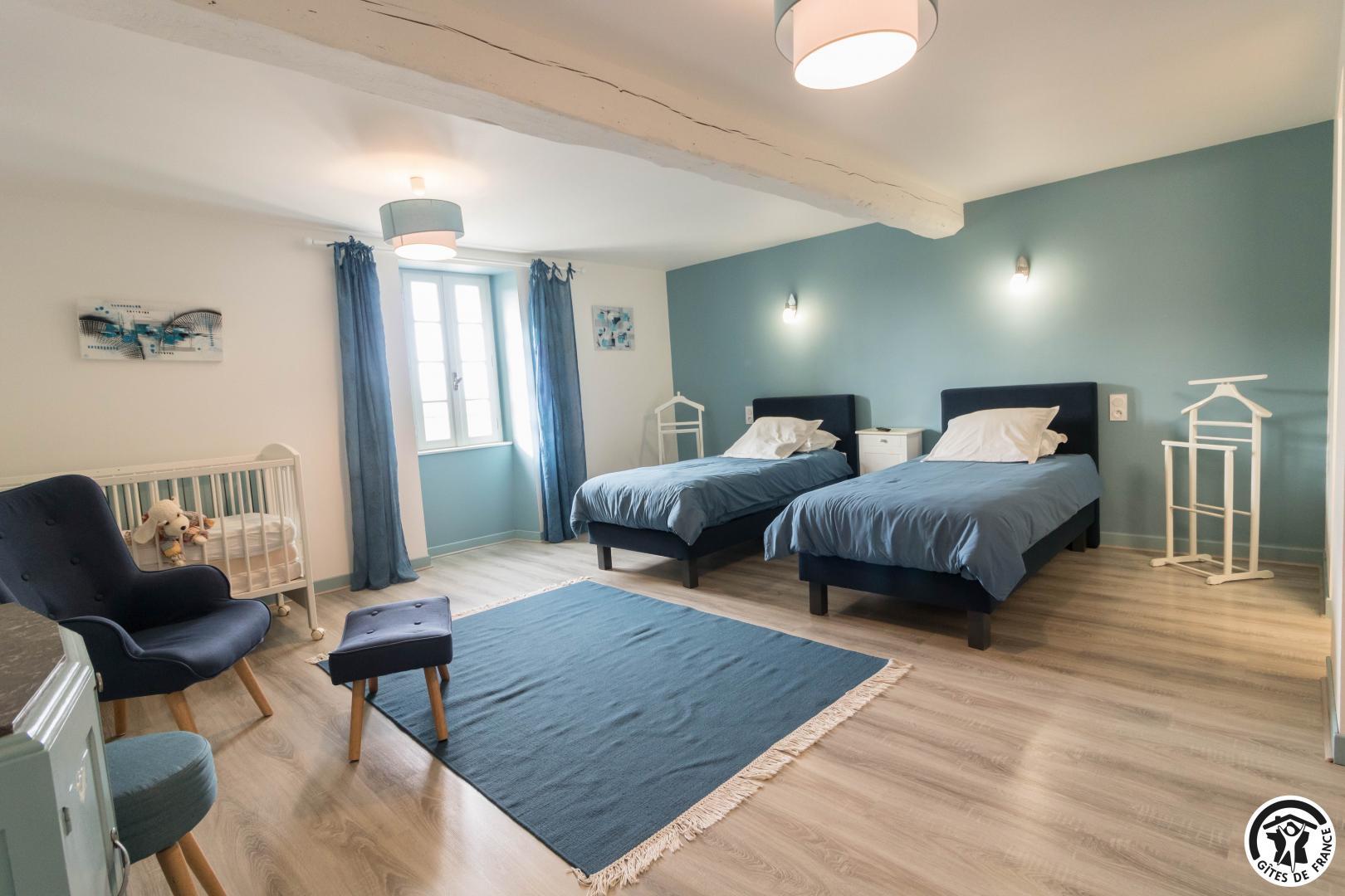 Ground floor: entrance hall, large living room with dining area and sitting room, kitchen, children’s playroom and separate toilet. First floor: 4 bedrooms, each with private shower room and WC (1 double bed (160cm) (1 double bed (140cm) (1 double bed (160cm) and 2 twin beds (80cm) (2 twin beds (80cm) (1 person)), lounge with library. Access to laundry room with washing machine and tumble dryer. Natural swimming pool and garden shared with the owners. Private courtyard, terrace and garden (garden furniture, deckchairs and barbecue). Electric vehicle charging point. Private courtyard, terrace and garden (garden furniture, deckchairs and barbecue). Garage with space for one car and possibility of parking in front of the gîte. Table tennis, table football and gym equipment.
