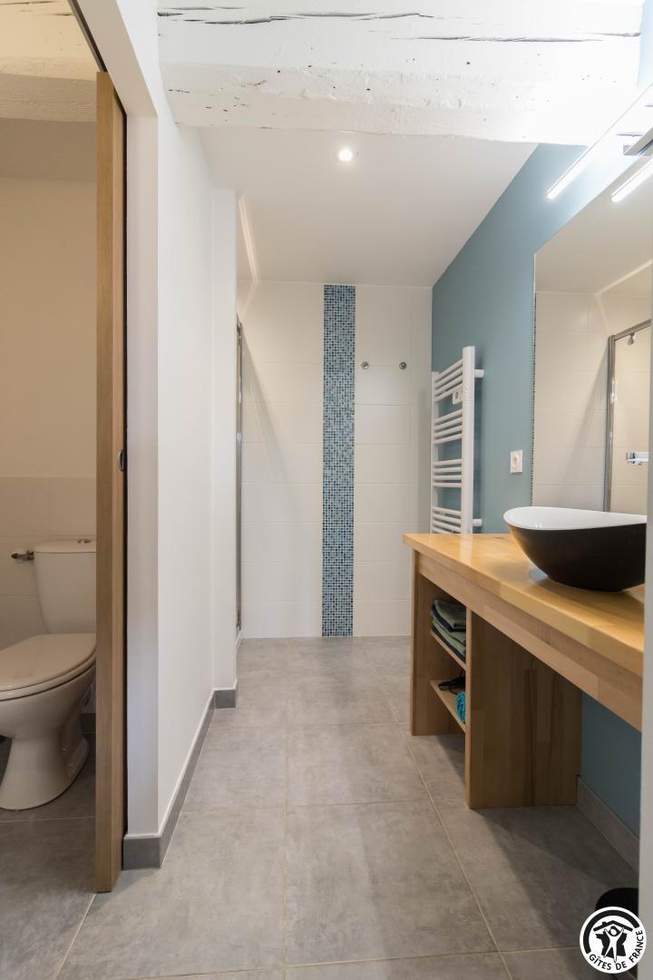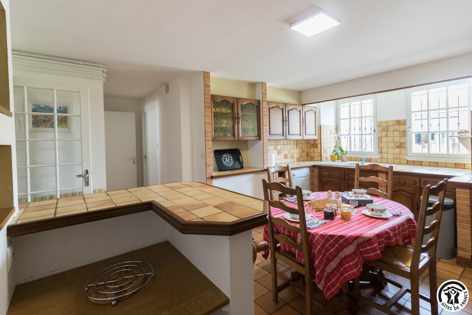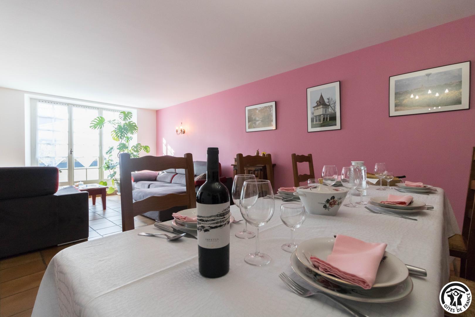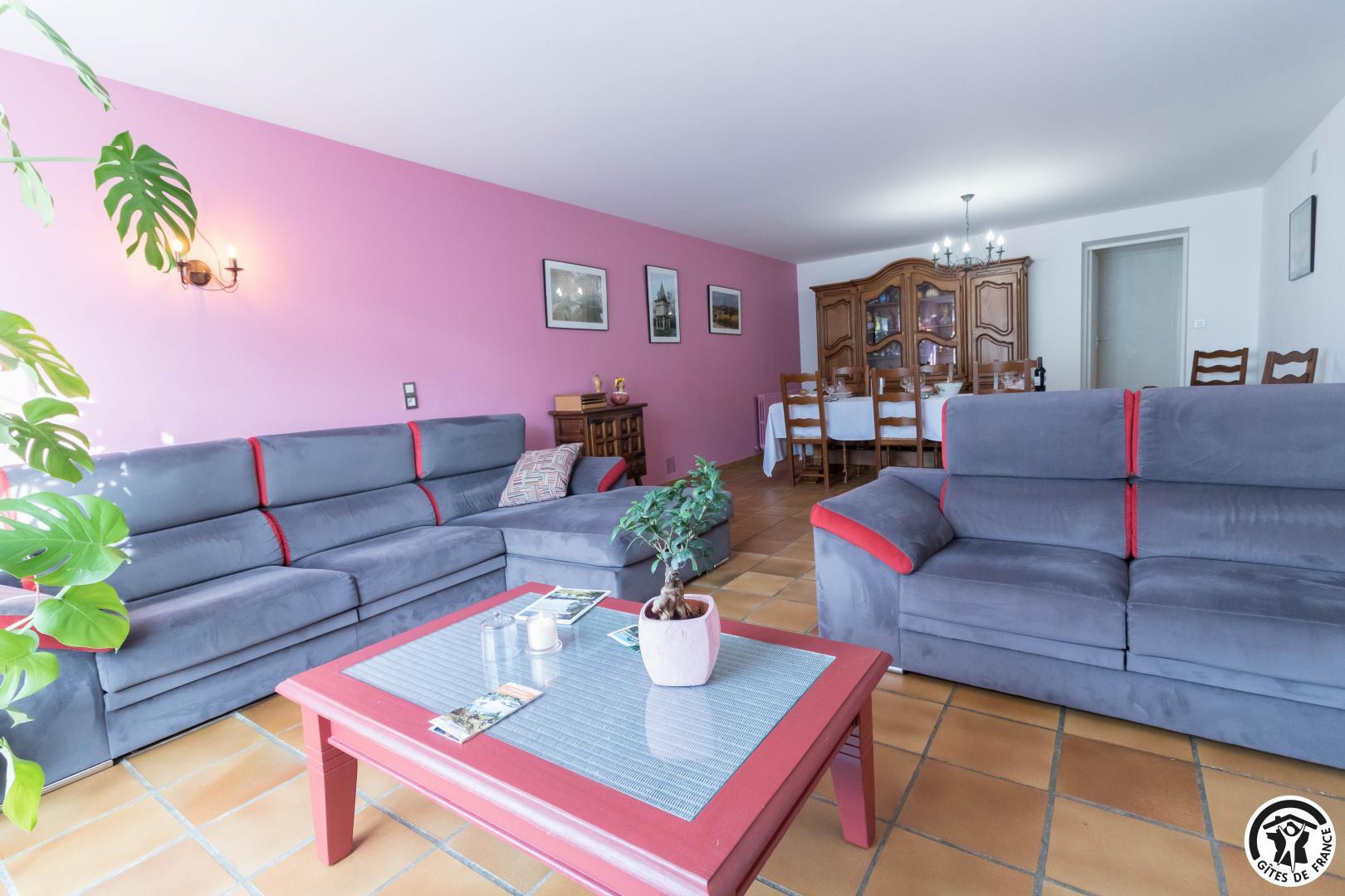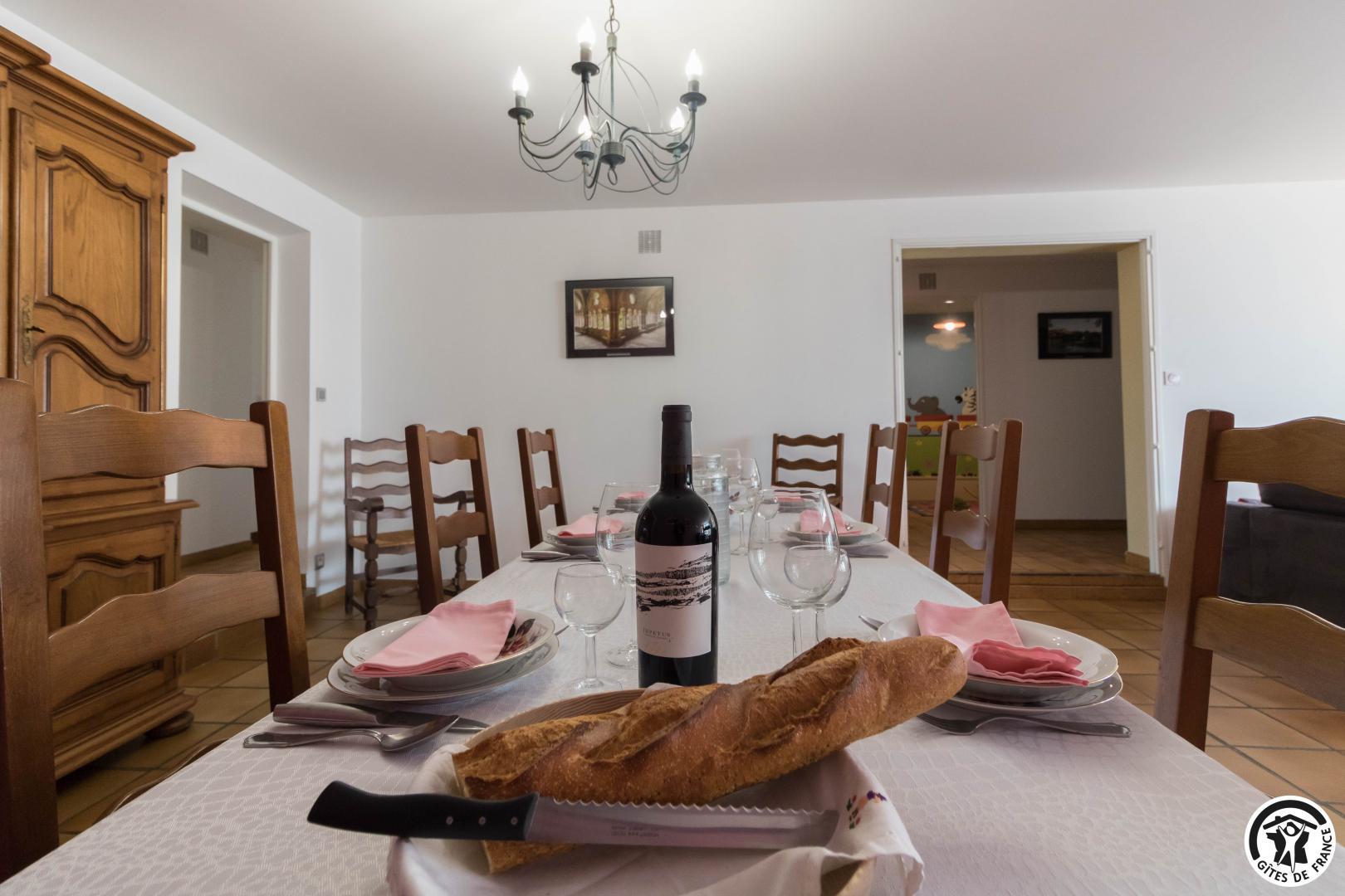 Ground floor: entrance hall, large living room with dining area and sitting room, kitchen, children’s playroom and separate toilet. First floor: 4 bedrooms, each with private shower room and WC (1 double bed (160cm) (1 double bed (140cm) (1 double bed (160cm) and 2 twin beds (80cm) (2 twin beds (80cm) (1 person)), lounge with library. Access to laundry room with washing machine and tumble dryer. Natural swimming pool and garden shared with the owners. Private courtyard, terrace and garden (garden furniture, deckchairs and barbecue). Electric vehicle charging point. Private courtyard, terrace and garden (garden furniture, deckchairs and barbecue). Garage with space for one car and possibility of parking in front of the gîte. Table tennis, table football and gym equipment.
