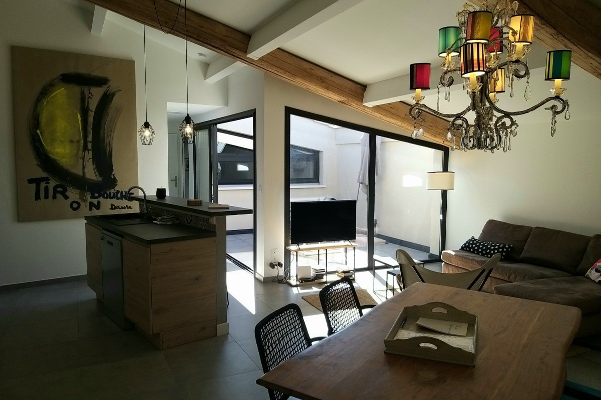 House Townhouseat first, of 55 m² for 5 people. Independant kitchen. TV, Coffee maker, Microwave, Refrigerator, Combined-freezing, Private laundry, Dishwasher, Internet. Independant bedroom : 1 bed of 160cm, Independant bedroom : 2 beds of 90cm. Terrace, Garden,. Parking nearby.