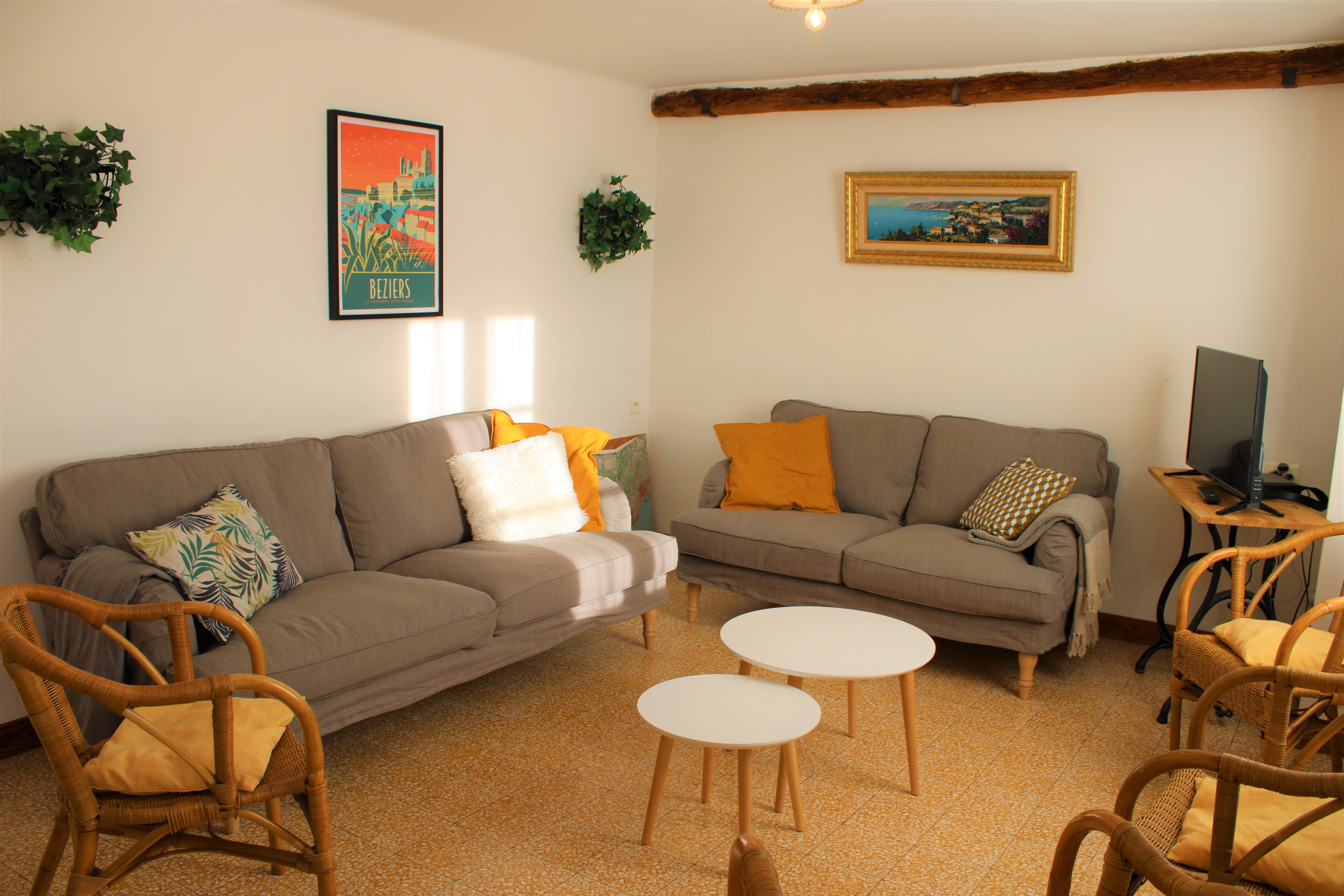 A 5 minutes de l’autoroute A9, 15 minutes des plages, avec vue sur la Cathédrale Saint-Nazaire, situé au coeur d’une oliveraie de plusieurs hectares, le Hameau de Montplaisir vous accueille dans le gîte “Le Sauvignon” pour 10 personnes avec au rez-de-chaussée : une chambre double avec salle d’eau, séjour, cuisine séparée équipée, un wc. A l’étage : une chambre à 2 lits, un dortoir avec 2 lits superposés et salle d’eau, une chambre double, salle de bain avec toilettes, terrasse, piscine collective.