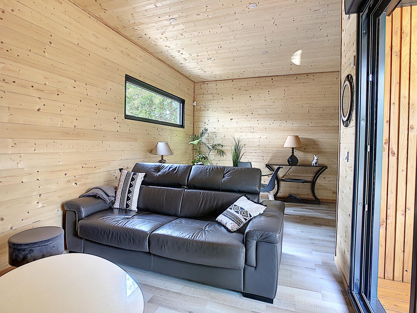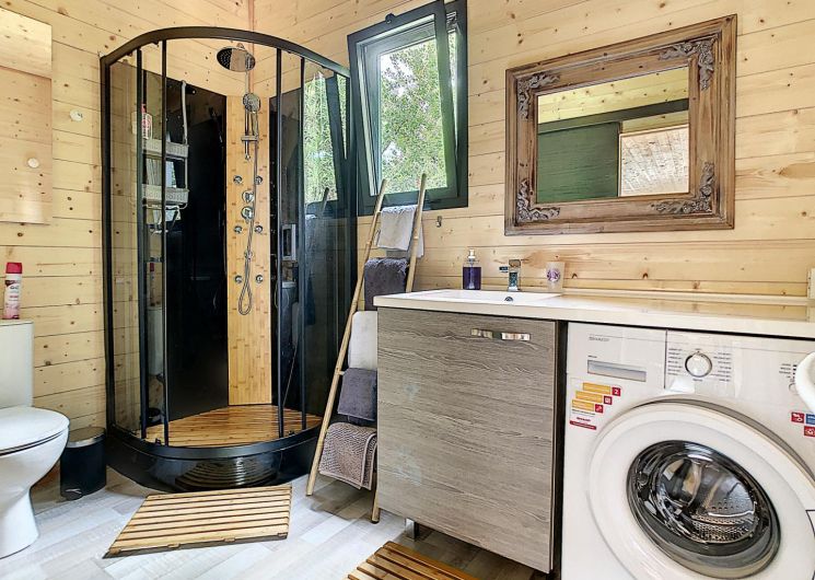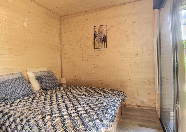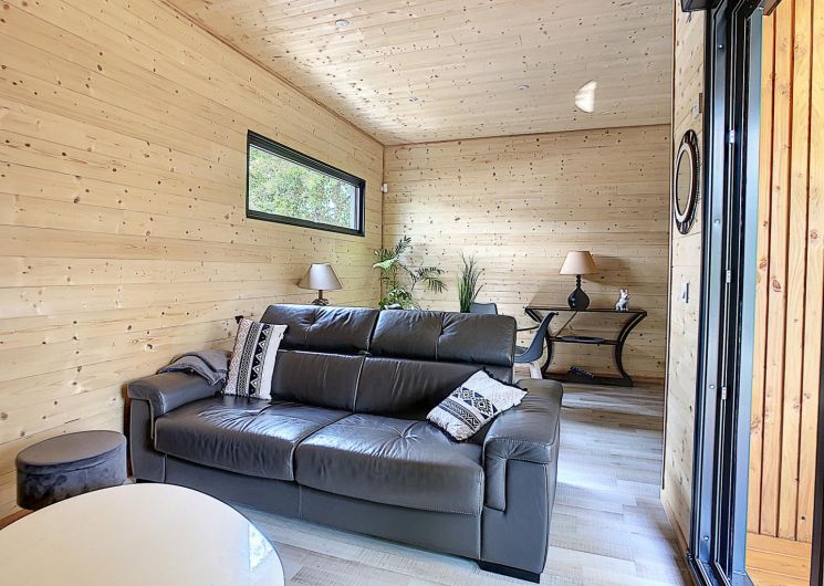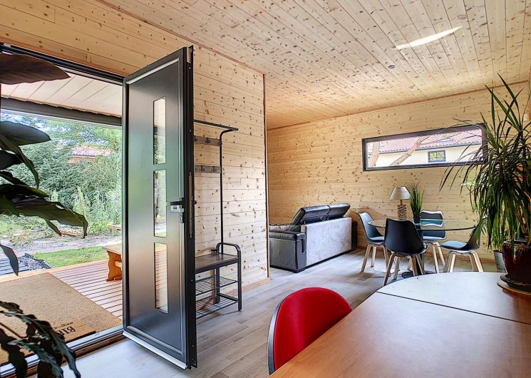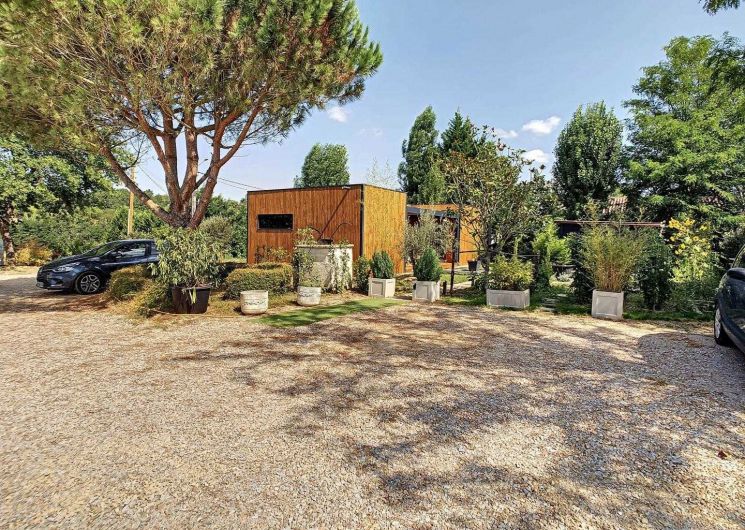 L’Oustal de la Mane d’Auta is a detached wooden house on a property that also includes an old renovated farmhouse occupied by a second gîte and a year-round rental. Parking is available in the courtyard. The gîte is not overlooked and looks out over the garden, which is planted with trees and flowers. The owners live nearby. Garden furniture, loungers and deckchairs available. Pets not allowed.