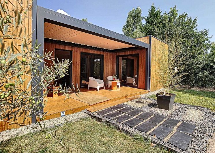Wooden house with bioclimatic terrace, all comforts, for 2 people, 27 km from Toulouse. Canal du Midi 2 km away: an ideal stop-off for cyclists. All-inclusive prices!