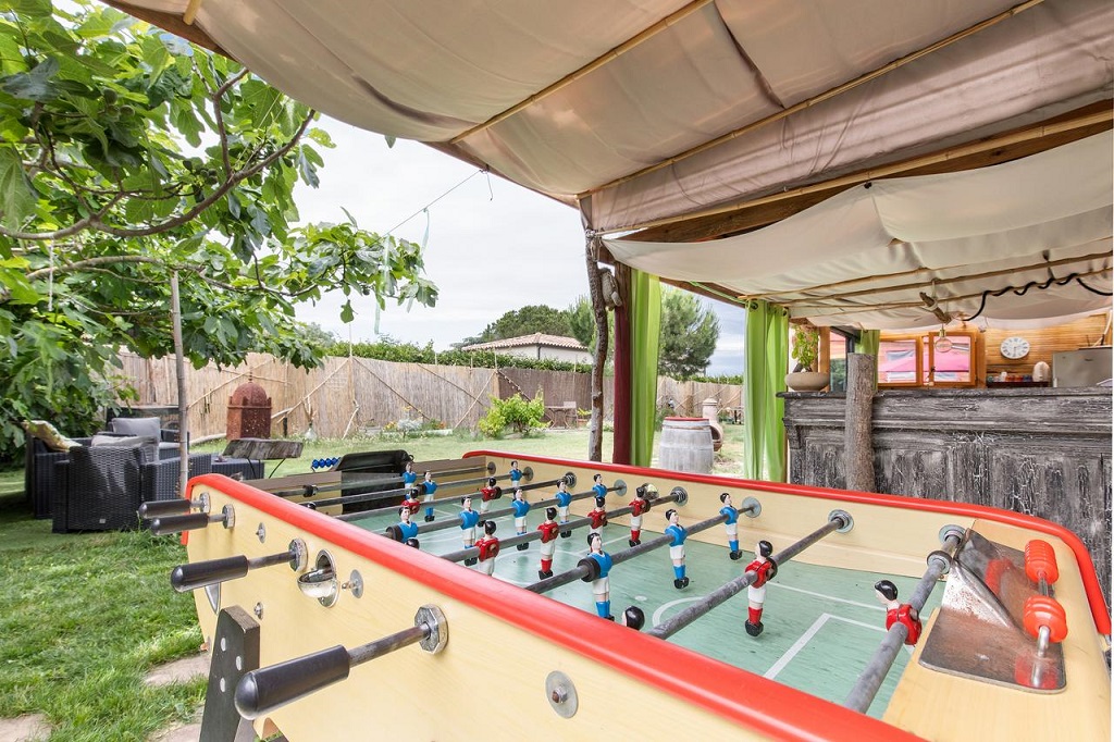 Personalized living areas in a 300 m² garden with free table soccer and table tennis.