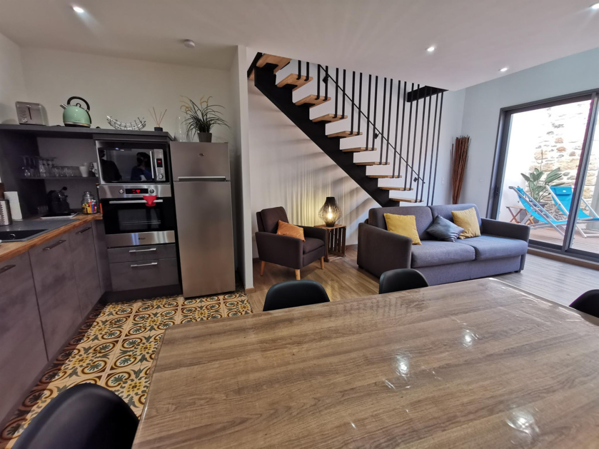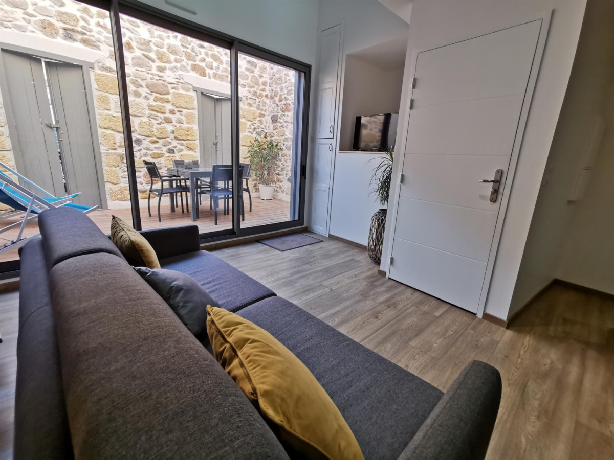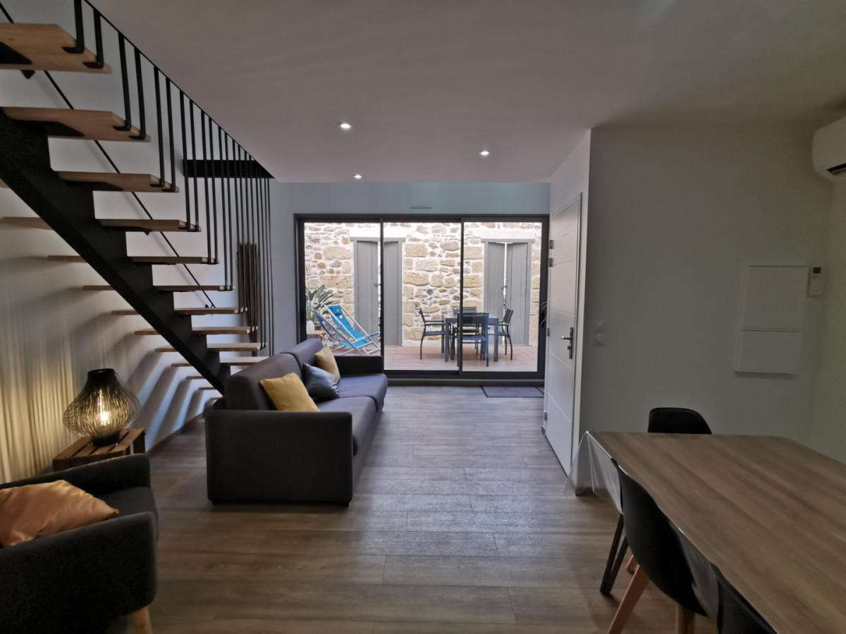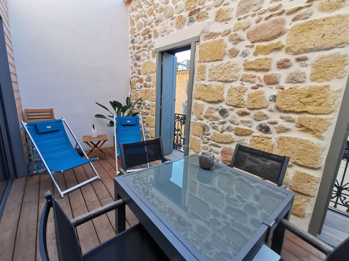 Gîte de 60 m² sur 2 niveaux, au premier étage d’une maison de village rénovée et comprenant : un séjour avec coin-cuisine tout équipé, deux chambres (1 lit 160X200cm dans chaque chambre), une salle d’eau avec WC séparé L’hébergement comprend également une terrasse tropézienne de 14 m² avec salon de jardin et transats ainsi qu’un garage en rez-de-chaussée pour 2 voitures. Climatisation réversible dans le séjour et dans chaque chambre, WIFI, lits faits, linge de toilette inclus. Ménage de fin de séjour en option à 50€. ATTRAITS TOURISTIQUES : Marseillan, plages, Sète, l’étang de Thau (parcs ostréicoles), Béziers, Pézenas, Canal du Midi, sports nautiques (Kithau).