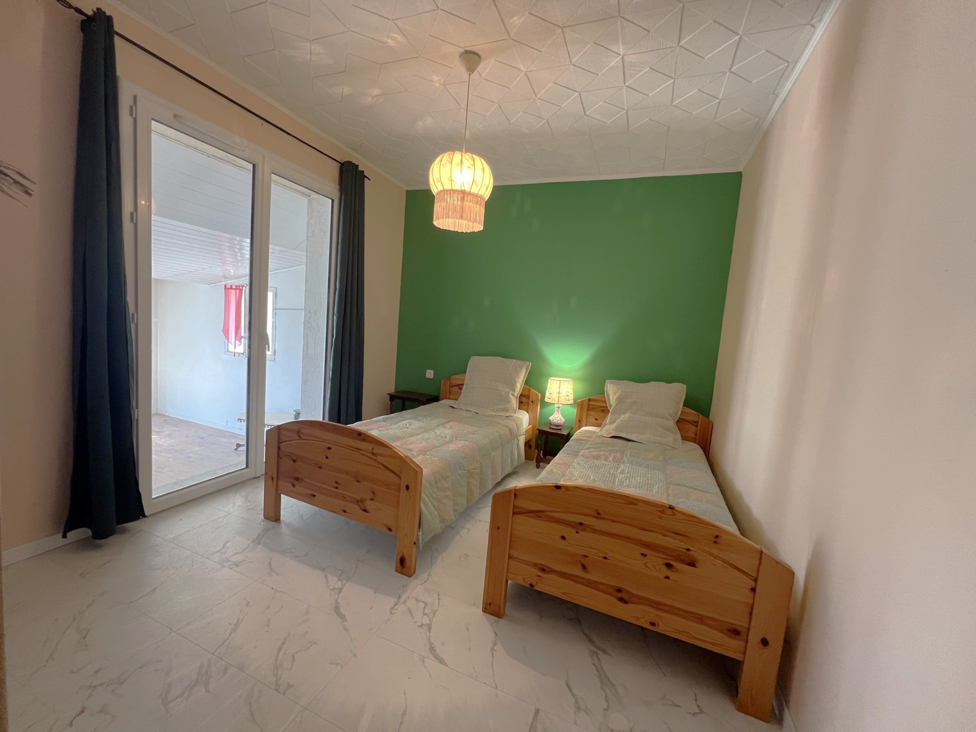 Chambres : deux chambres avec lits doubles (140×190) et une chambre avec deux lits simples (90×190).