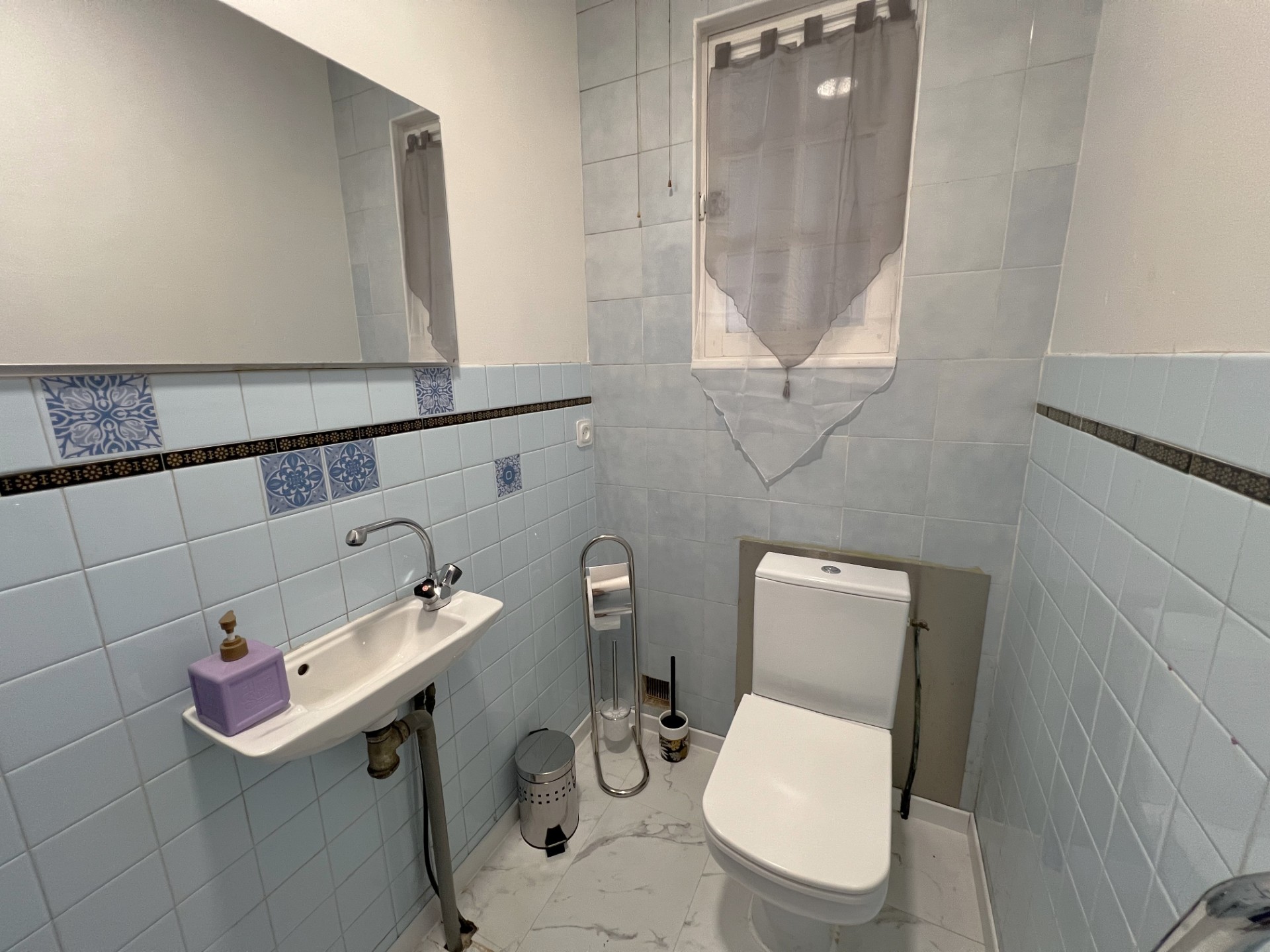 Salle annexe : machine à laver, lit et chaise bébé, jeux de société, livres, table et chaises – idéale comme salle de jeux.