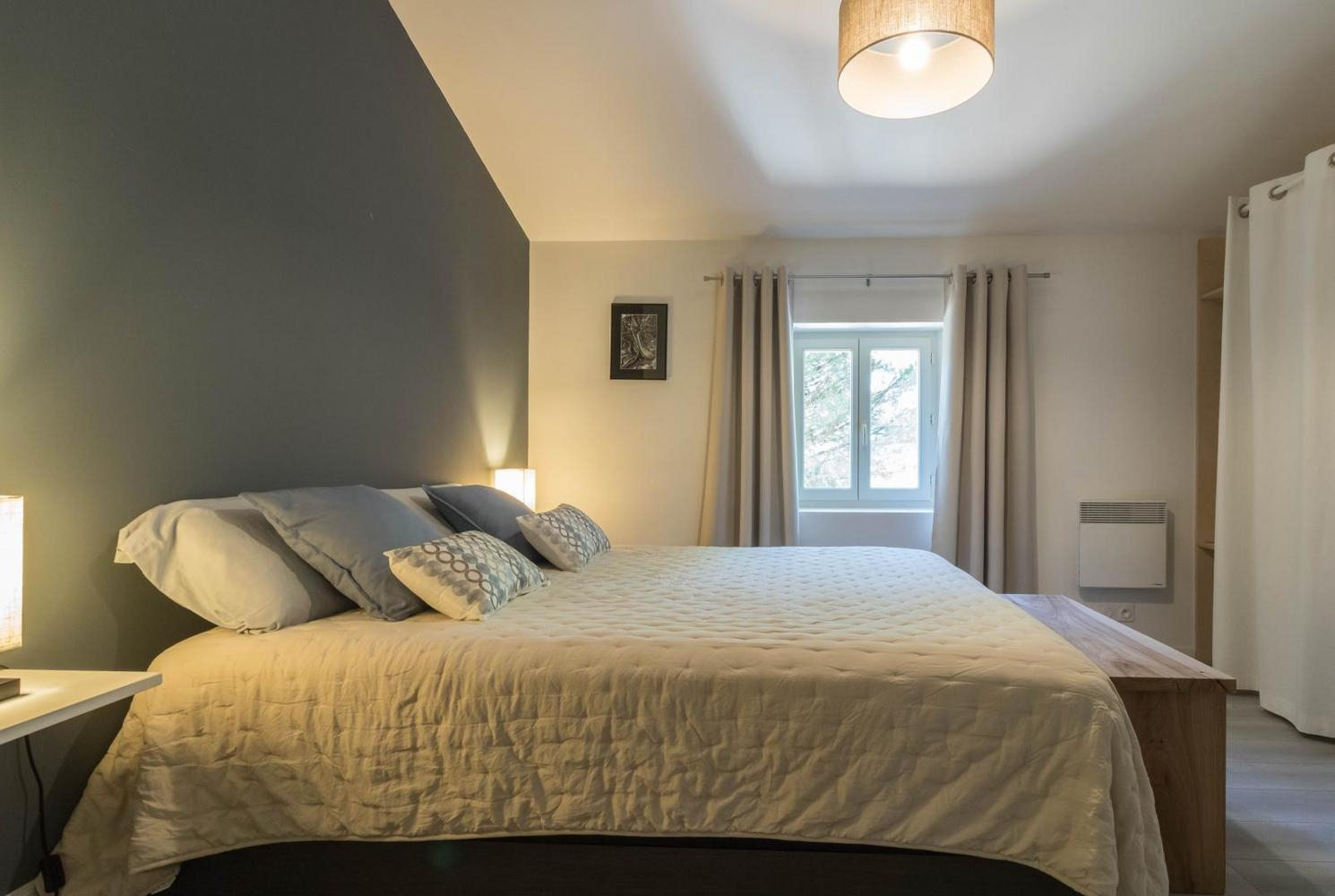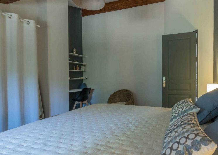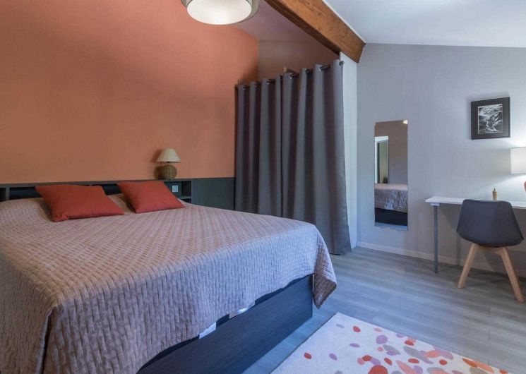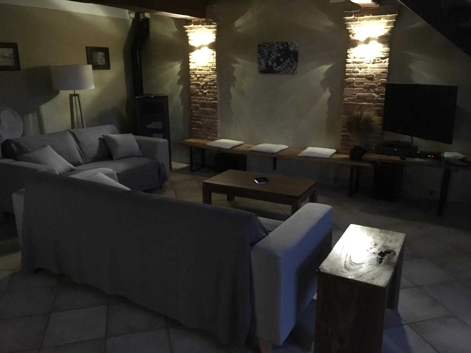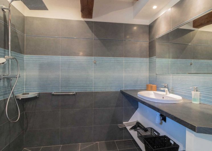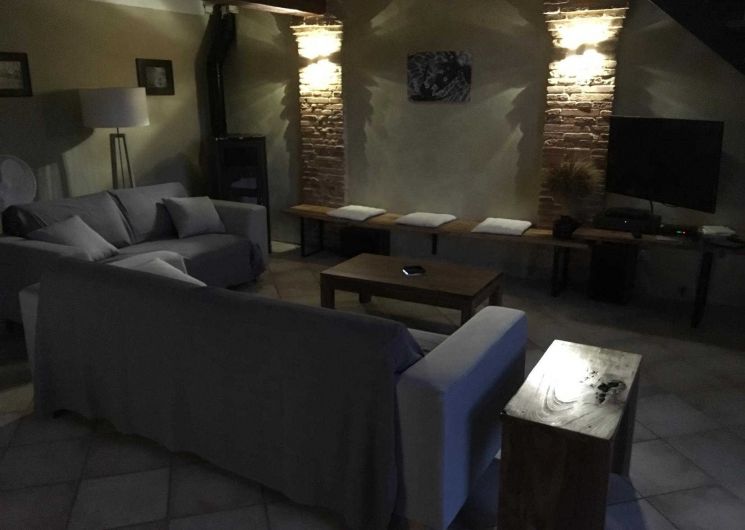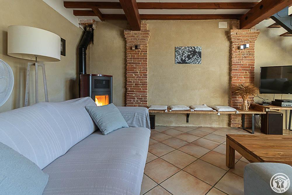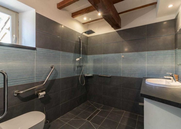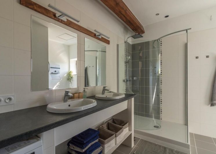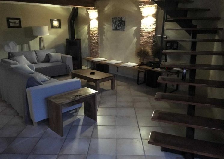 Jean-Michel and Sabine chose to renovate this building using local, environmentally-friendly materials. Ground floor: entrance, large lounge, dining area separated from the kitchen by a bar. There is a bedroom (1 double bed 140cm) and a shower room/WC, which may be accessible to people with reduced mobility, and a separate WC. Upstairs: the staircase leads to a mezzanine relaxation area, 3 bedrooms (1 double bed (160cm)) (2 single beds (90cm)) (1 double bed (160cm)), shower room, WC. Underfloor heat pump central heating on ground floor + pellet stove in living room + radiators upstairs. Extra beds available on request. Pets not allowed, except in exceptional circumstances (please consult the owner).