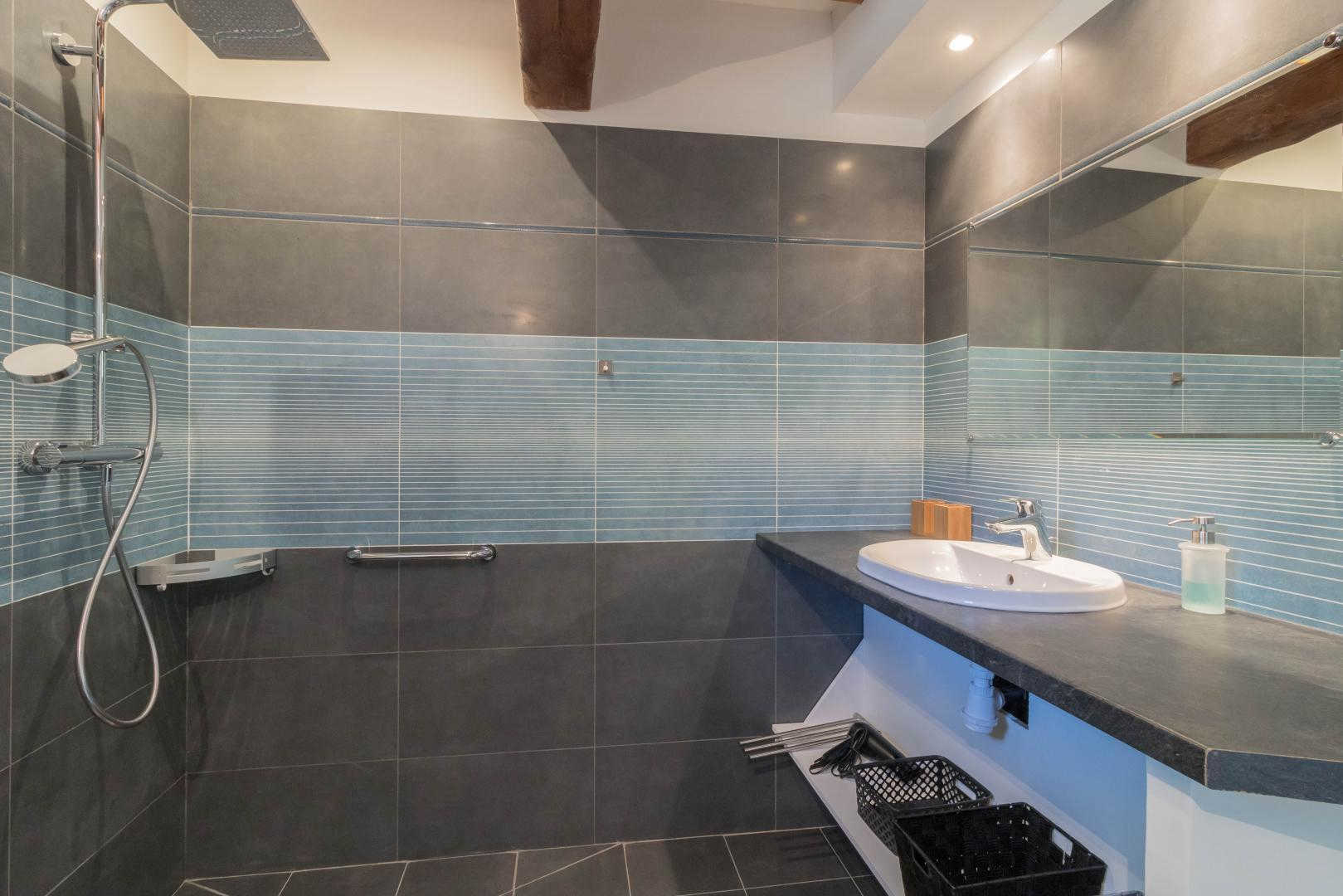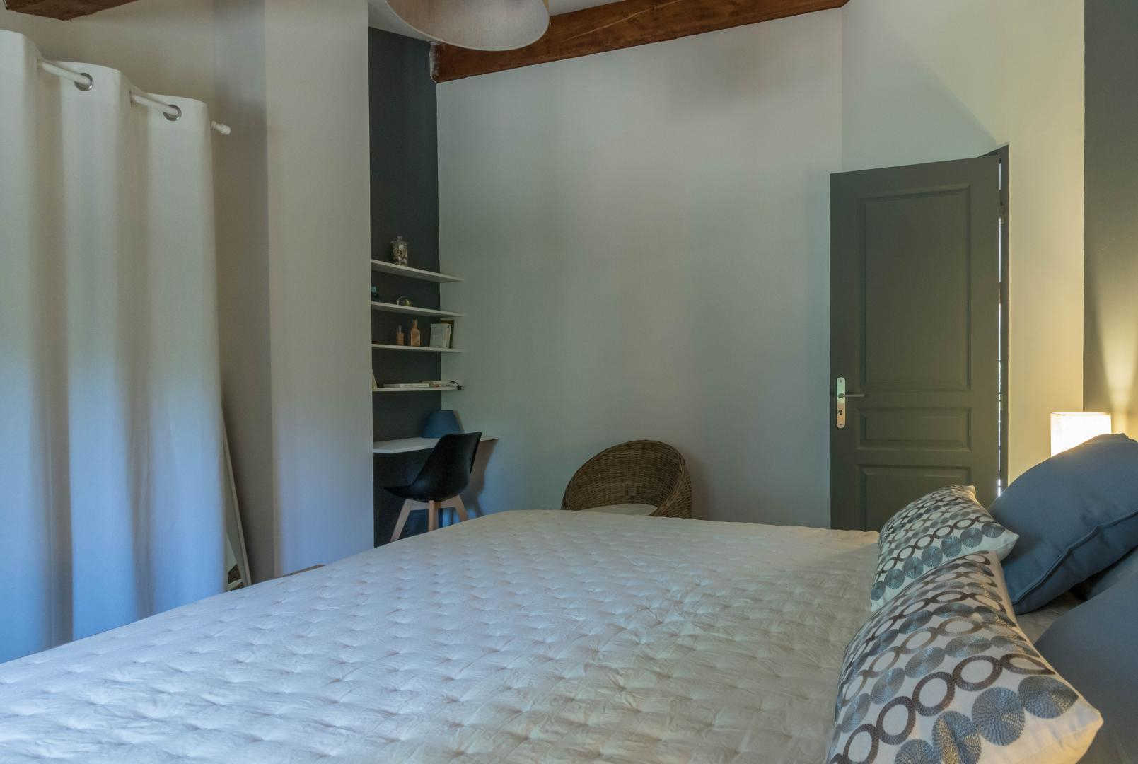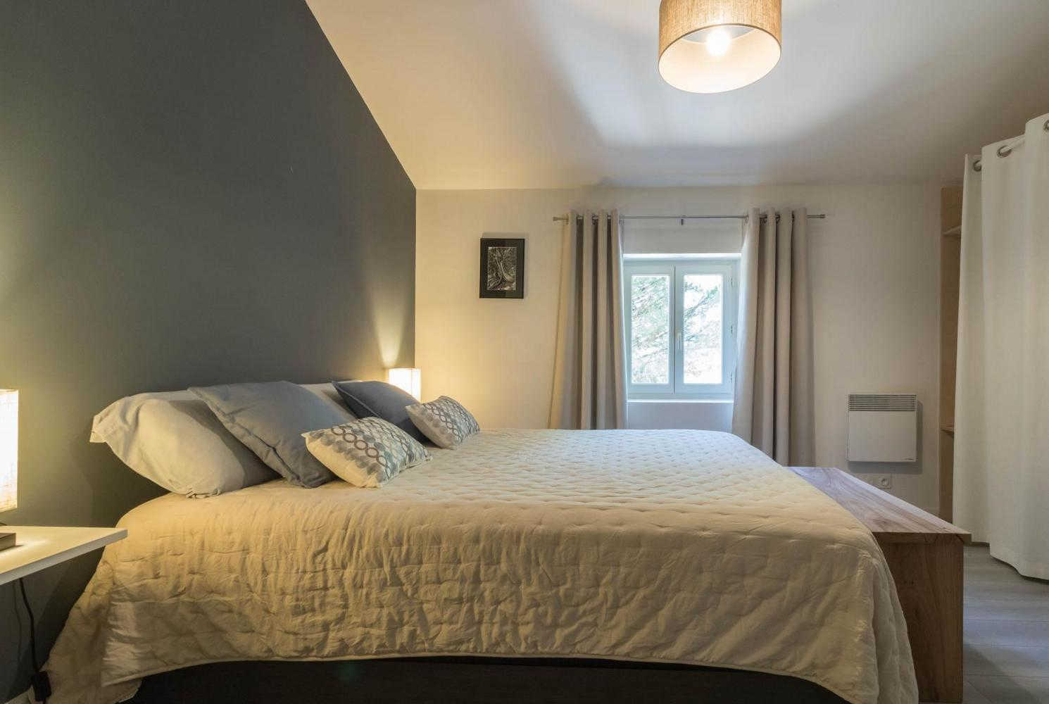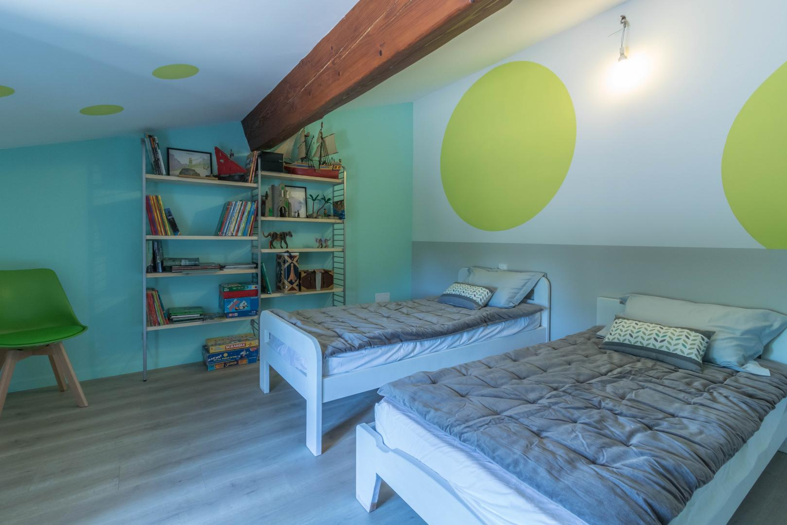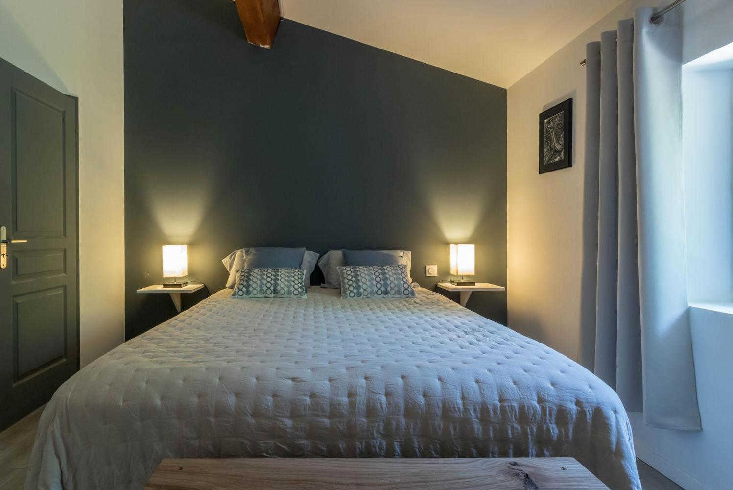 Jean-Michel and Sabine chose to renovate this building using local, environmentally-friendly materials. Ground floor: entrance, large lounge, dining area separated from the kitchen by a bar. There is a bedroom (1 double bed 140cm) and a shower room/WC, which may be accessible to people with reduced mobility, and a separate WC. Upstairs: the staircase leads to a mezzanine relaxation area, 3 bedrooms (1 double bed (160cm)) (2 single beds (90cm)) (1 double bed (160cm)), shower room, WC. Underfloor heat pump central heating on ground floor + pellet stove in living room + radiators upstairs. Extra beds available on request. Pets not allowed, except in exceptional circumstances (please consult the owner).