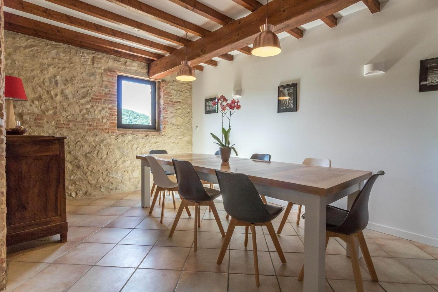 Come and enjoy the peace and quiet of this Lauragais house, built in the middle of fields. Gîte for 8 people on a farm with shared swimming pool!