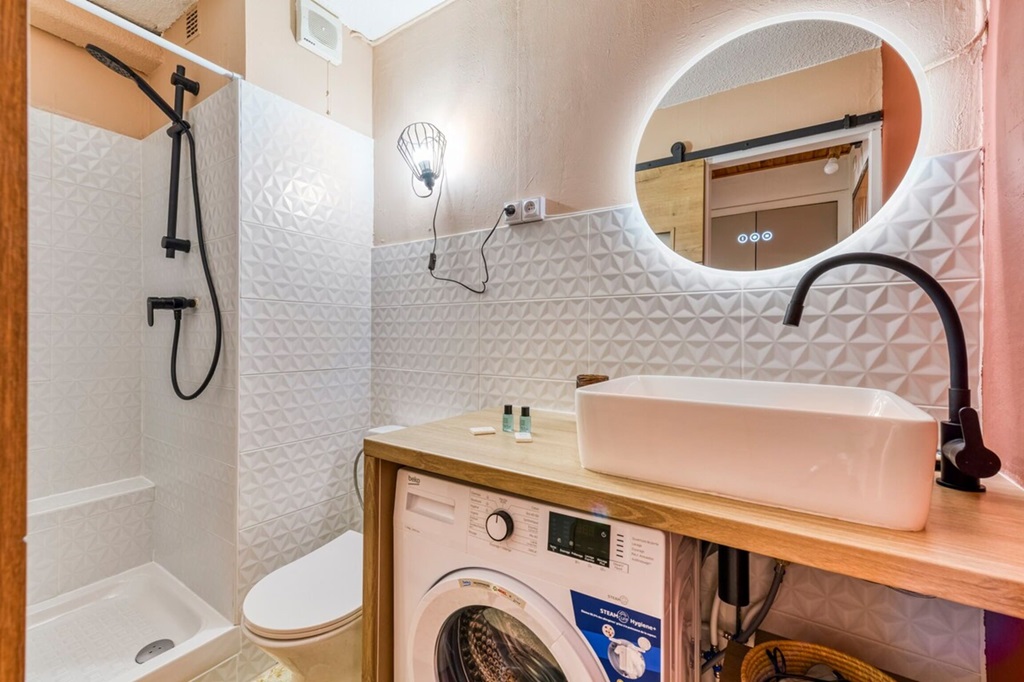 The 27m² studio has a fully-equipped kitchenette, and a bathroom renovated in 2023, with shower, washbasin, washing machine and toilet.