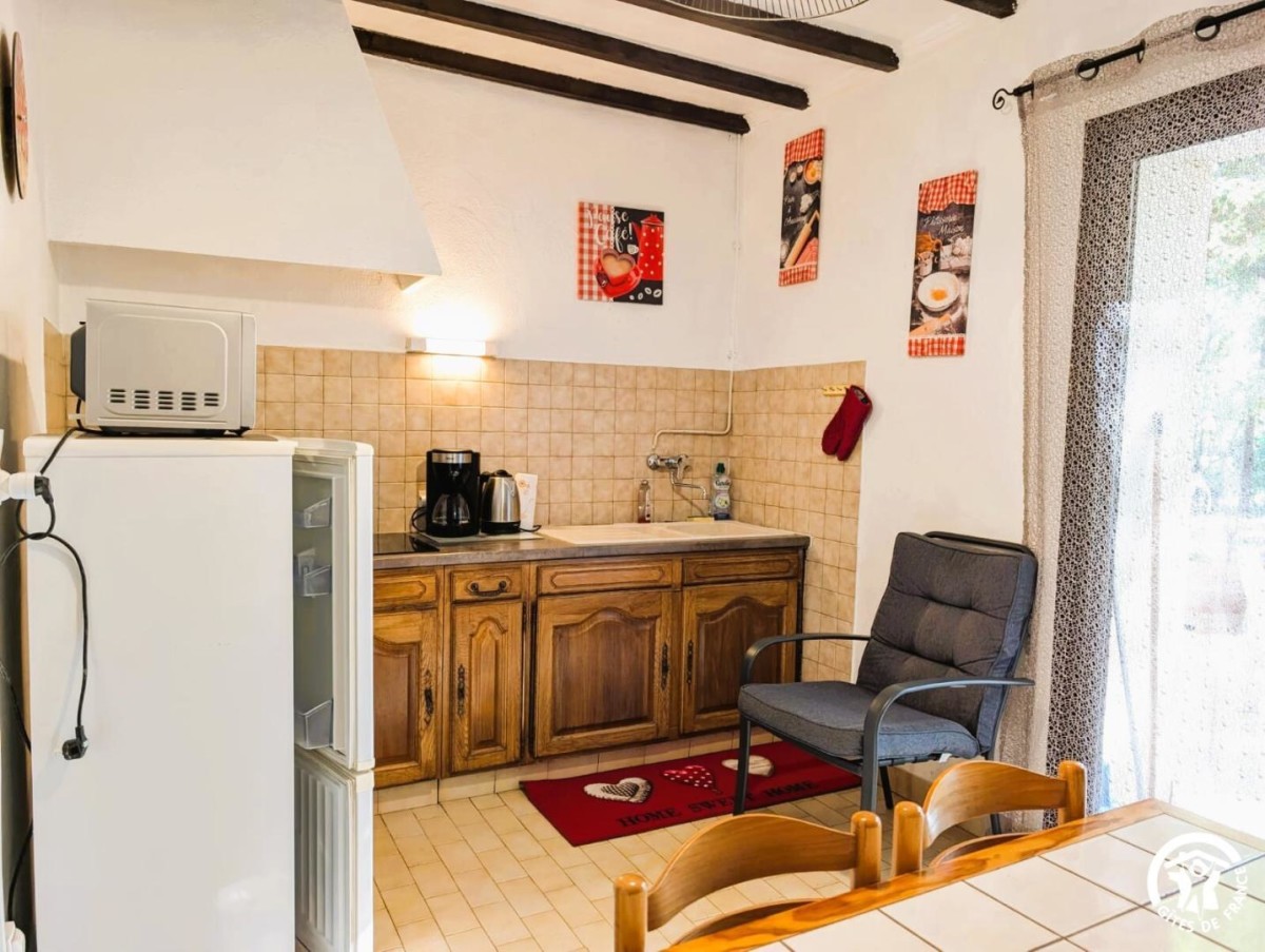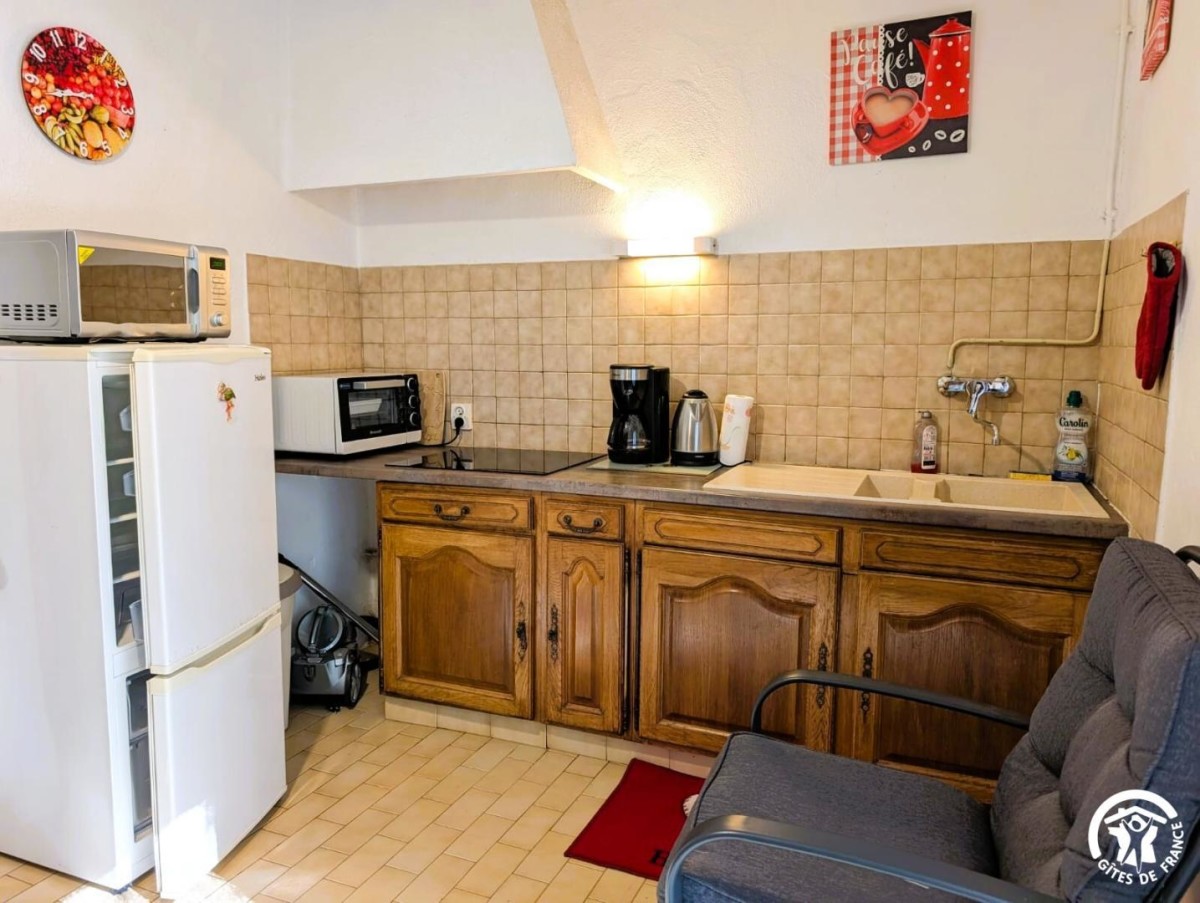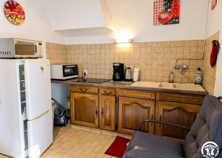 Sur un domaine agricole, dans un ancien batiment de ferme rénové, gite mitoyen à la rés. de vacances du propriétaire et à un autre gite. Plain-pied en R.D.C. : coin-cuisine/séjour, chambre (1 lit 2 pers.), salle d’eau, wc. Chauffage électrique, TV, lave-linge commun. Terrasse, s.d.j., barbecue commun, parking. Terrain de pétanque, table ping-pong. Sup. 40 m². Aire naturelle de camping sur le domaine et accueil. _ ATTRAITS TOURISTIQUES : l’Etang de Thau (centre d’ostréiculture), le Picpoul de Pinet (vin blanc), muscat de Frontignan, tielles de Sète, thermes Balaruc-les-Bains, Sète, Pézenas, Cap d’Agde.