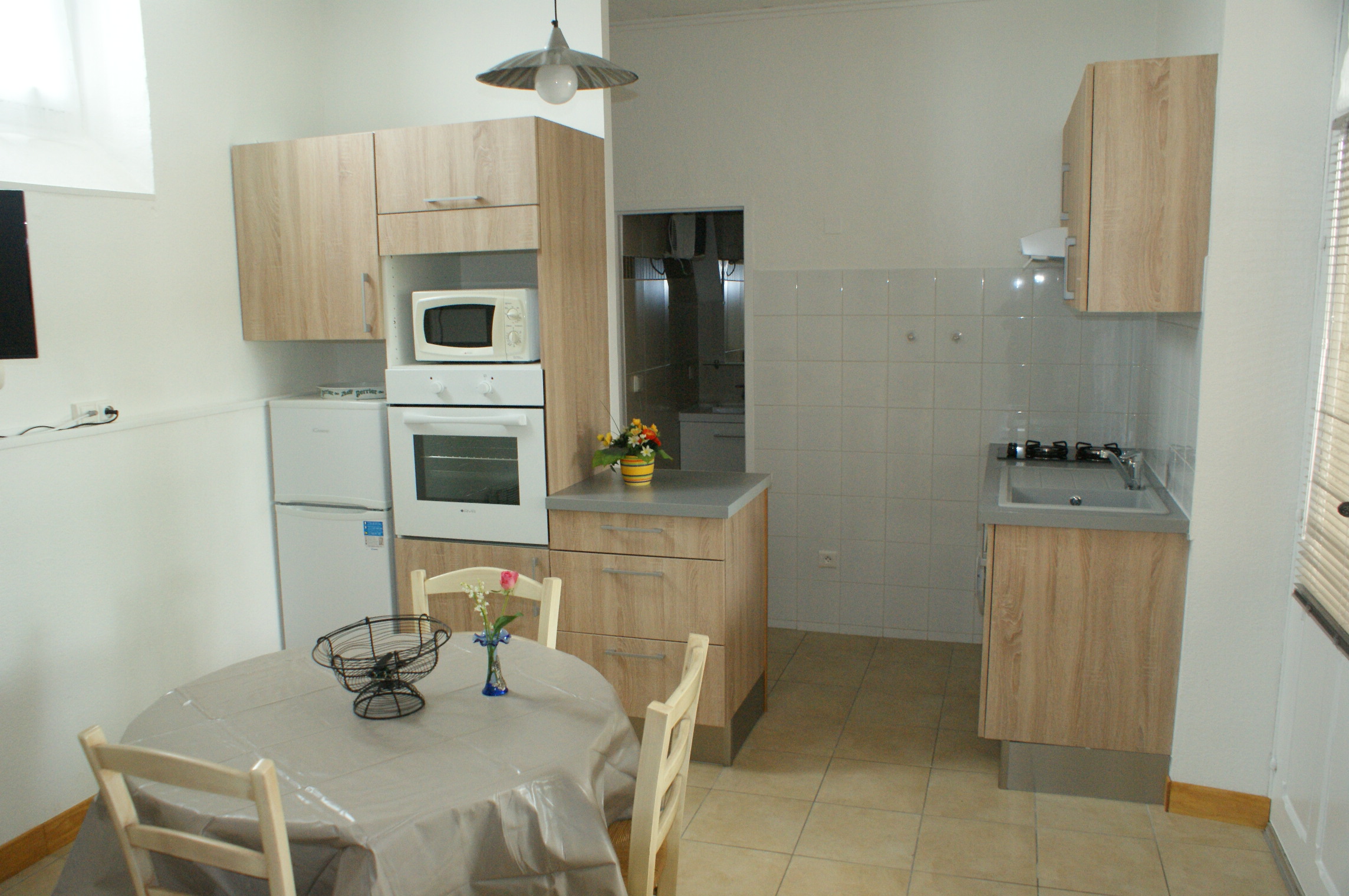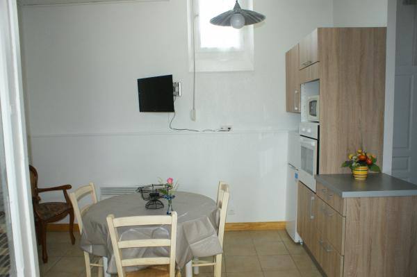 This ground-floor accommodation includes a kitchen (with microwave, oven and filter coffee maker) and a lounge area, as well as a double bedroom with a 140×190 bed, a shower room and separate WC.