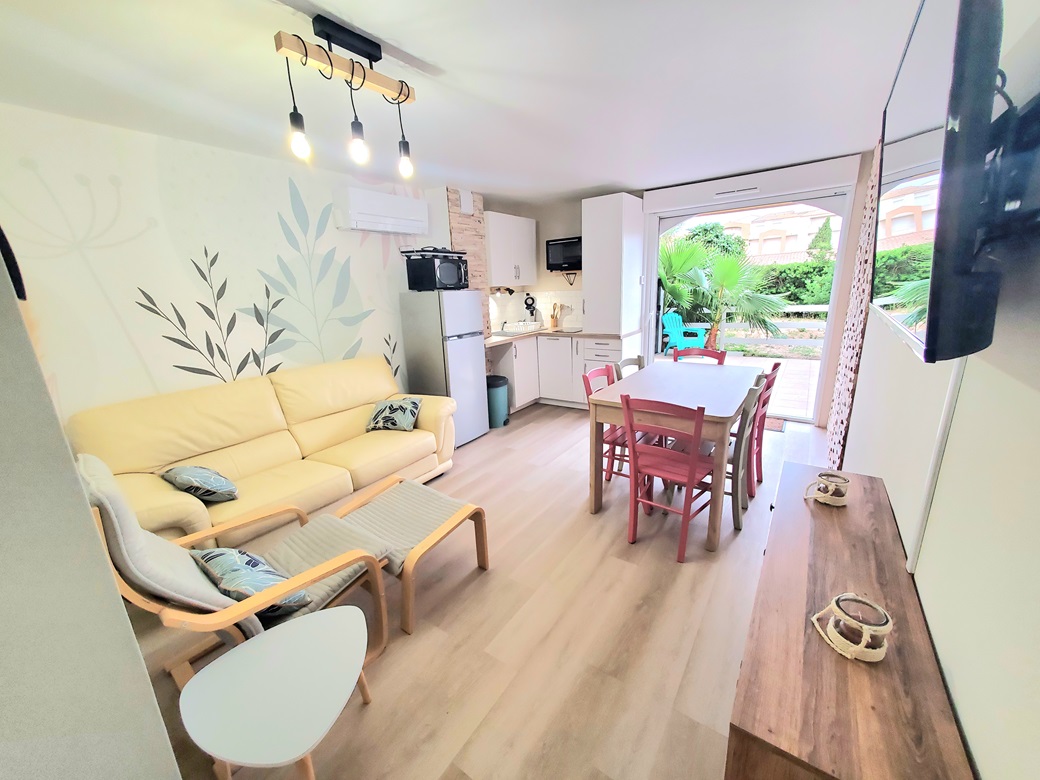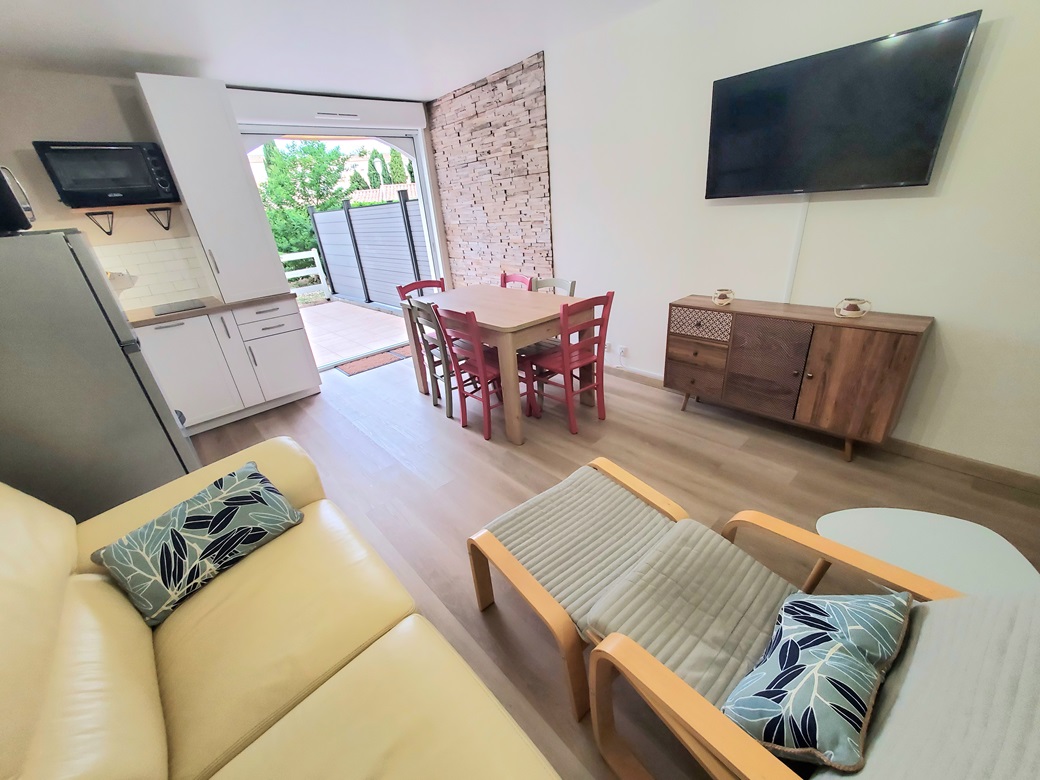 Agréable appartement T2 tout confort en rez de jardin, disposant d’une chambre séparée et d’une grande terrasse.