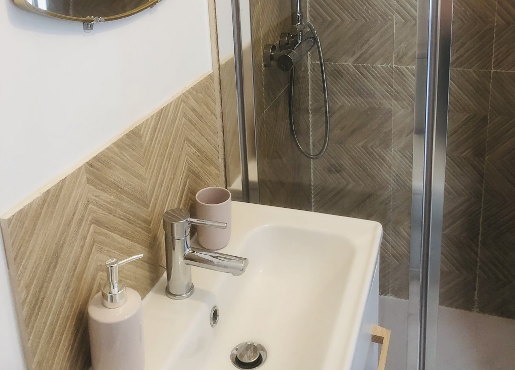 The apartment comprises a living room with kitchen and lounge area, a cosy bedroom and a small shower room with large shower and toilet.