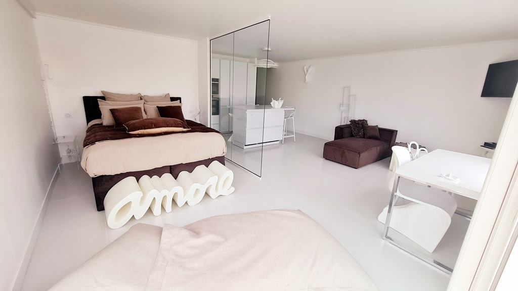 This apartment is the fruit of a dream. Every detail of the furnishings and decor has been thought through with meticulous attention to detail, so that you can enjoy comfort and luxury entirely focused on your well-being. Here you’ll find the originality, design and elegance to make your romantic getaway a refined experience.