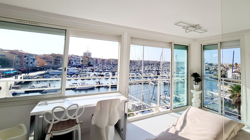 This brand-new suite embodies the desire for the absolute. Enjoy the marina view from sunrise to sunset. This spectacle is yours to enjoy thanks to the large bay windows that make your days both exotic and soothing.