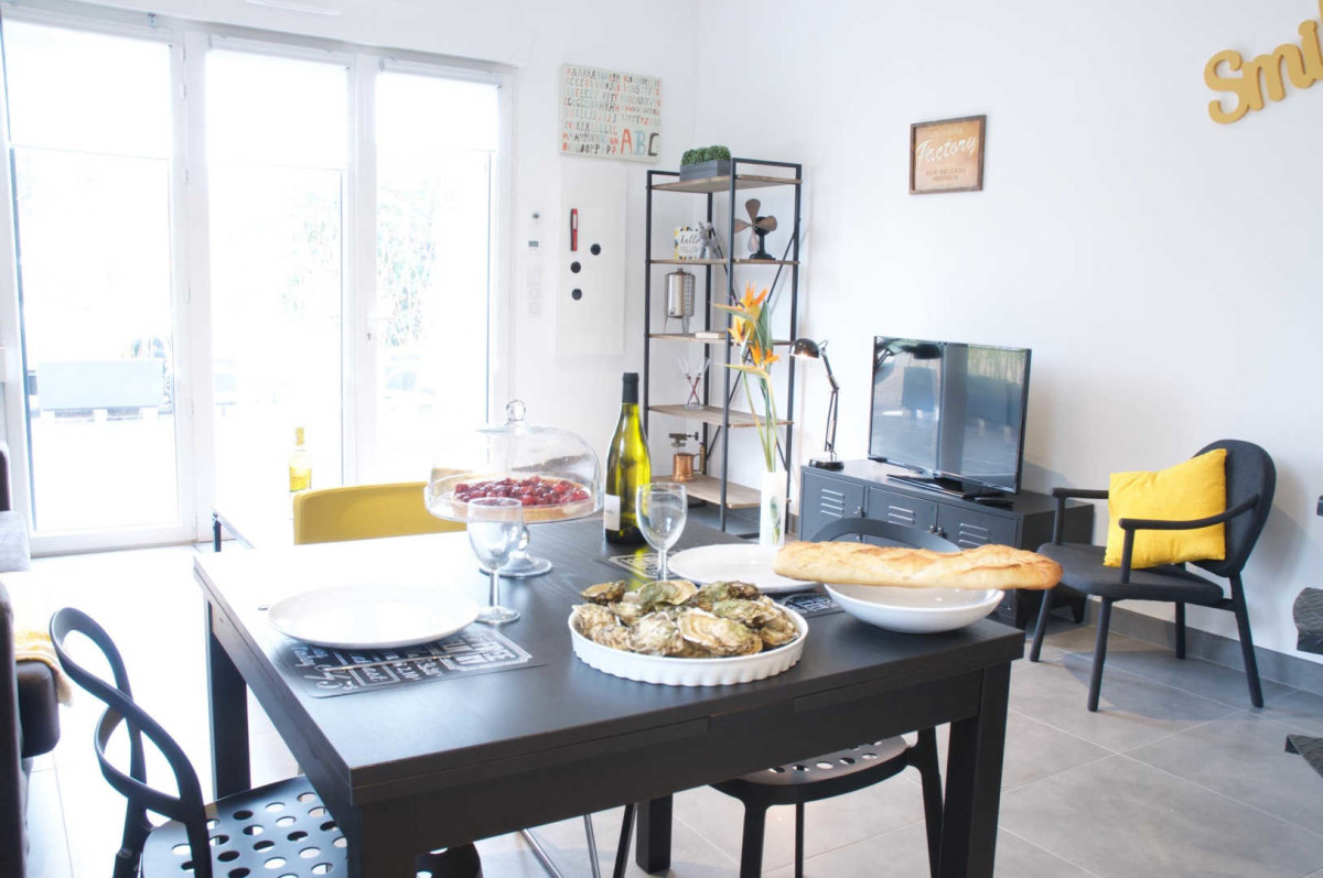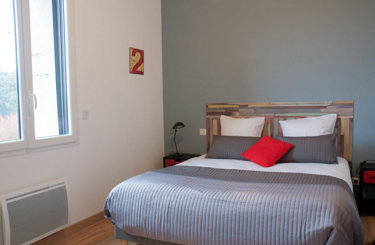 One of 4 gites in a fully renovated house set on a wine growing property producing Muscat of Frontignan. Gîte LEON : ground fl.: living room with kitchen area and lounge, wc. 1st fl.: bedrm 1 (2 joining beds 80×200 cm, 1 bed in 90×200 cm), shower/wc. Electric heating, TV. Beds made, final cleaning on request. Private terrace (29 m²), garden furniture, bbq, parking. Bikes available. Surface area : 52 m². Spa resort of Balaruc at 7 km. TOURIST ATTRACTIONS : city of Montpellier (18 kms), cathedral of Villeneuve les Maguelone, Pézenas (city of Molière), Sète (fishing harbour and beaches – 7 km), Les Aresquiers (nice beach with pine forest), massif of La Gardiole.